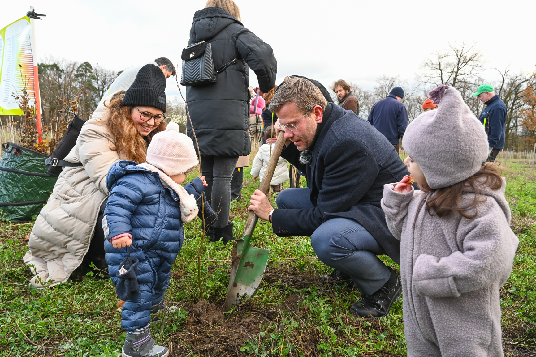 Die städtischen Wälder werden um 4 626 Bäume reicher: Für jedes Baby, das im Jahr 2023 in Nürnberg zur Welt kam, pflanzt die Stadt Nürnberg mit dem Tiergarten als Forstbetrieb einen Baum. Stellvertretend für alle 2023 geborenen Babys haben heute rund 20 Familien mit ihren Kindern einige der Bäumchen gesetzt. Bei der Auswahl der Bäume wählte der Tiergarten insbesondere solche Arten, die mit den Herausforderungen des Klimawandels gut zurechtkommen.