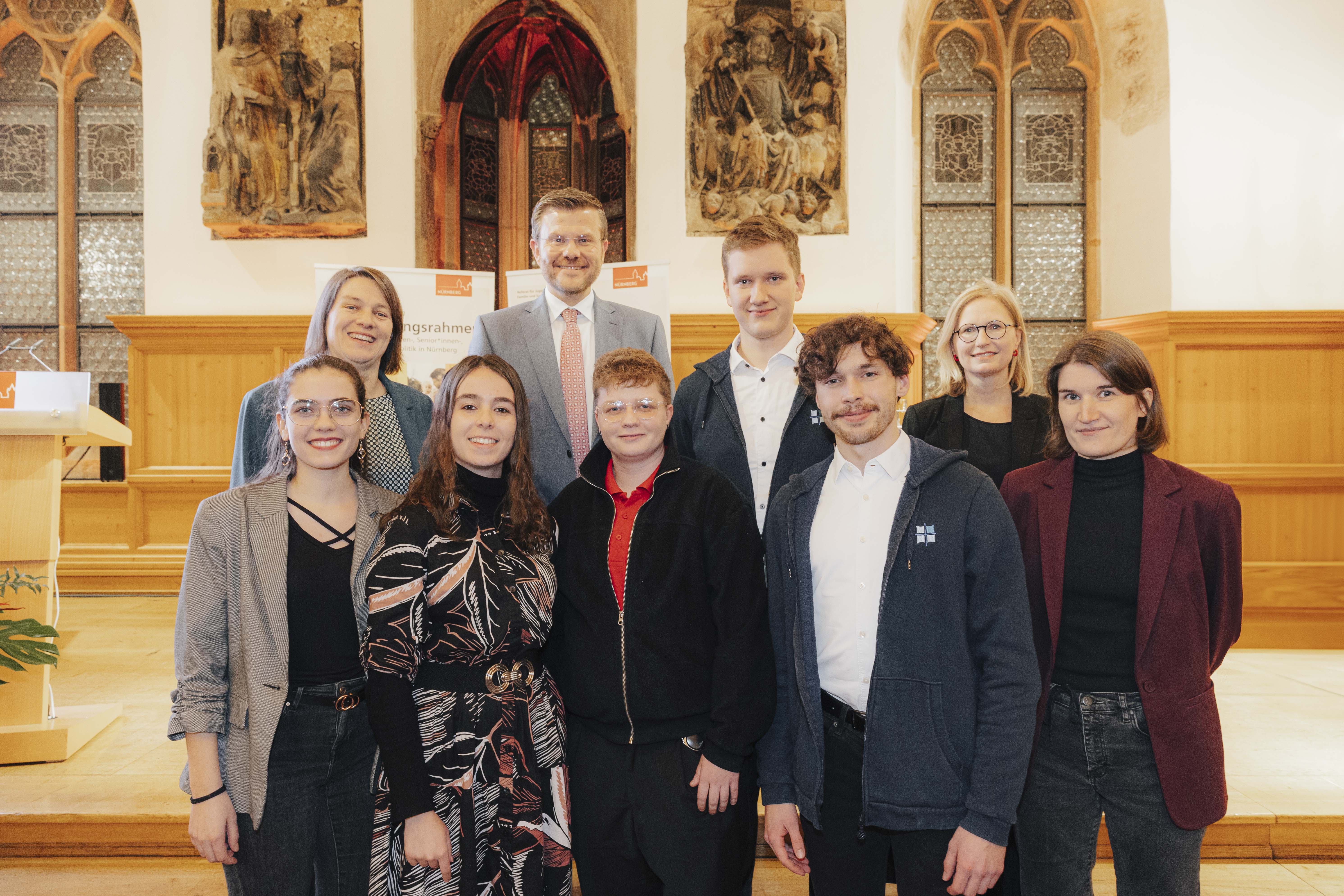 Im Mittelpunkt der Veranstaltung standen sieben Auszeichnungen, die an diesem Abend verliehen wurden, um das herausragende ehrenamtliche Engagement zu würdigen. Darunter befanden sich die diesjährigen Gewinnerinnen und Gewinner des Preises für junges Engagement „Youngagement“: Cinnamon Society – eine junge Autorengemeinschaft, die ehrenamtlich lektoriert und neue Autorinnen und Autoren mit Rat und Tat unterstützt, Lacrima – Trauergruppe für Kinder der Johanniter Unfallhilfe, Kinderzeltlager Maxi Kolbe – ein Zeltlager der Katholischen jungen Gemeinde St. Maximilian Kolbe in Nürnberg, und Jugendtanzensemble – ein junges und ehrenamtlich organisiertes Ensemble, das durch die gemeinsame Entwicklung von Choreografien und Tanzstücken junge Tänzerinnen und Tänzer fördert.