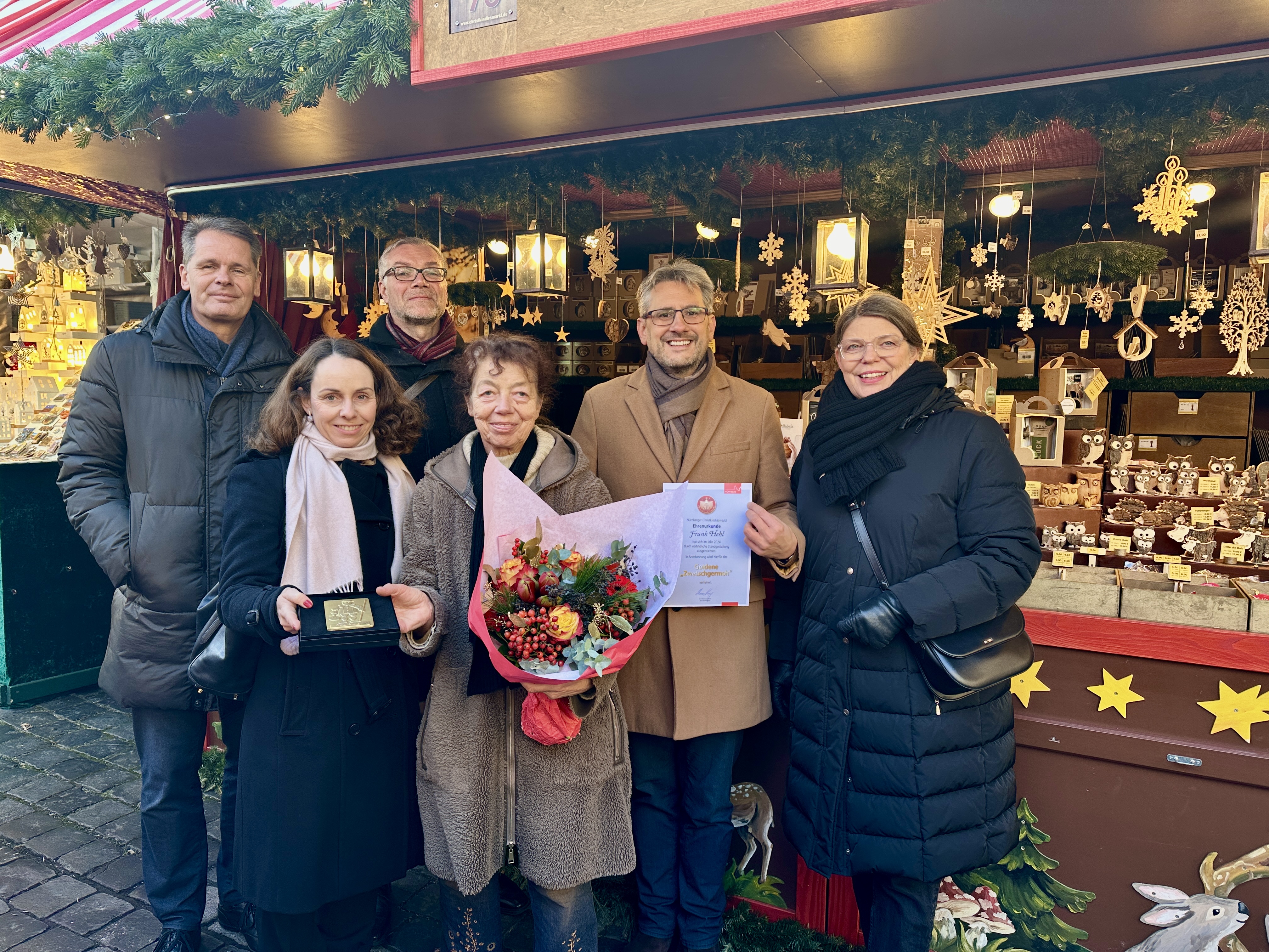 Am heutigen Mittwoch, 18. Dezember 2024, hat Wirtschafts- und Wissenschaftsreferentin Dr. Andrea Heilmaier die schönsten Buden des Nürnberger Christkindlesmarkts ausgezeichnet. Der begehrte Zwetschgermoh in Gold, Silber und Bronze prämiert herausragend gestaltete Verkaufsstände. Die höchste Auszeichnung ging an den Stand mit Holzdekorationsartikeln von Spiel & Kunst GmbH von Frank Hehl aus Freudenstadt. Auf Platz zwei kam die Bude mit Weihnachtsschmuck und Geschenkartikeln aus Glas und Kristall von Carmen Brütting aus Gößweinstein. Den dritten Platz teilen sich die Ideenheimat GmbH von Petra Hill aus Erlangen, die Heimatgeschenkartikel anbietet, und Veli Karaca aus Nürnberg, der handgearbeitete Geschenke für Kinder verkauft.
