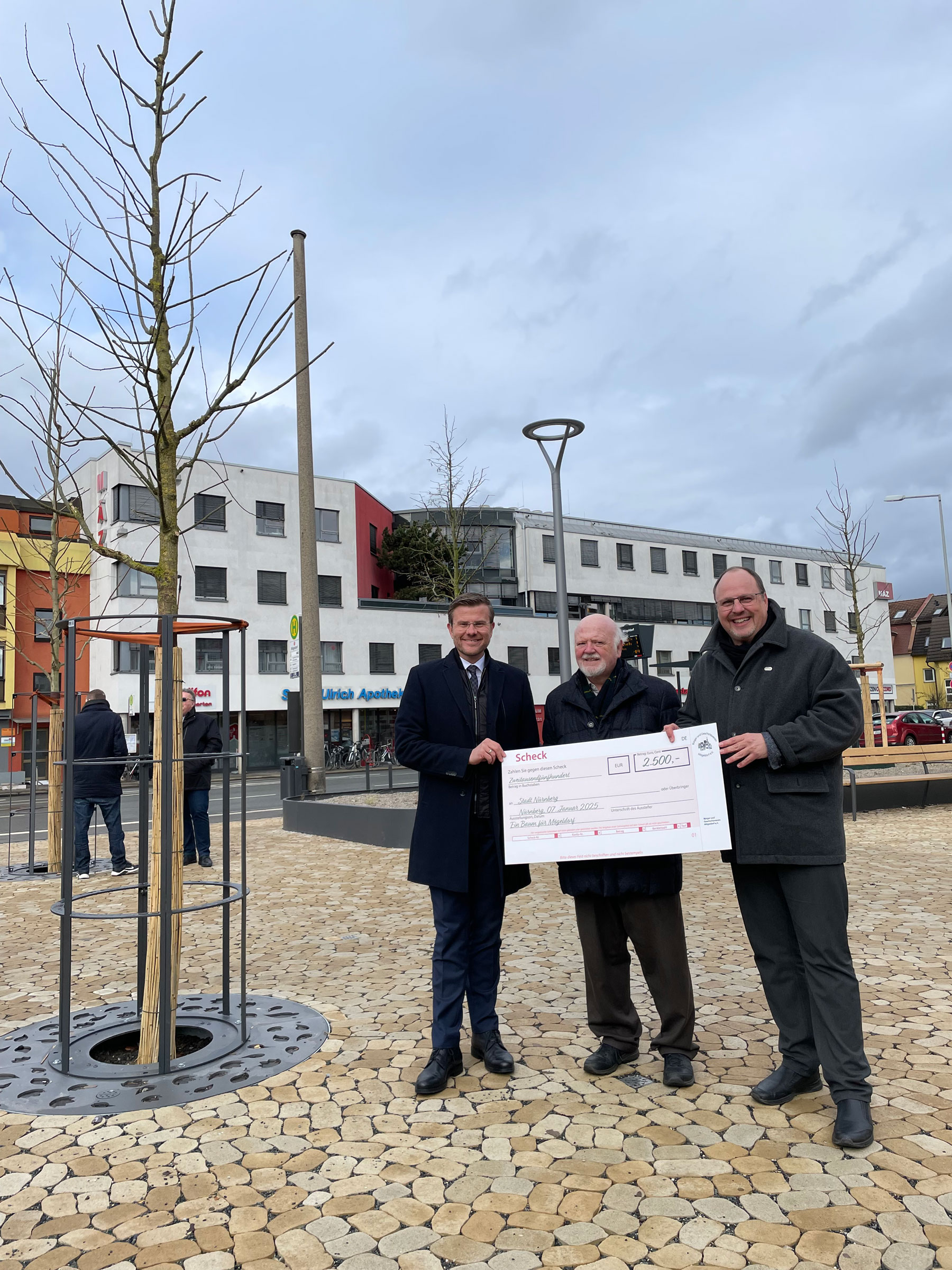 Eine Spende des Bürgervereins über 2 500 Euro für eine Baumpflanzung nahmen Oberbürgermeister Marcus König und Bürgermeister Christian Vogel dankend entgegen. Die Baumpflanzung wird im Laufe des Jahres an einem geeigneten Standort in Mögeldorf stattfinden.