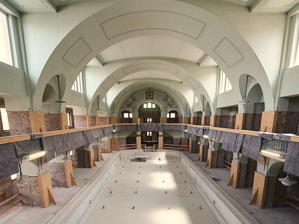 Das Volksbad bekommt in seiner historischen Schwimmhalle I auf zwei Ebenen einen Kinderbereich. Im Erdgeschoss entsteht eine seichte, warme Wasserlandschaft für Babys, im ersten Stock die Spielinstallation, die es Kindern erlaubt, kreativ mit dem Element Wasser umzugehen. Helmut Blaß, Technischer Werkleiter von NürnbergBad und Teil der Projektgruppe Volksbad, erläutert: „Die Kinder können Dämme bauen, kurbeln, pumpen und Wasser bewegen. Die in der Region ansässige Firma Hüttinger ist ein weltweit führendes Unternehmen für Installationen in Science Centern, Museen oder Messen. Dass ihre Technik unser Volksbad bereichert, ist super.“ tom