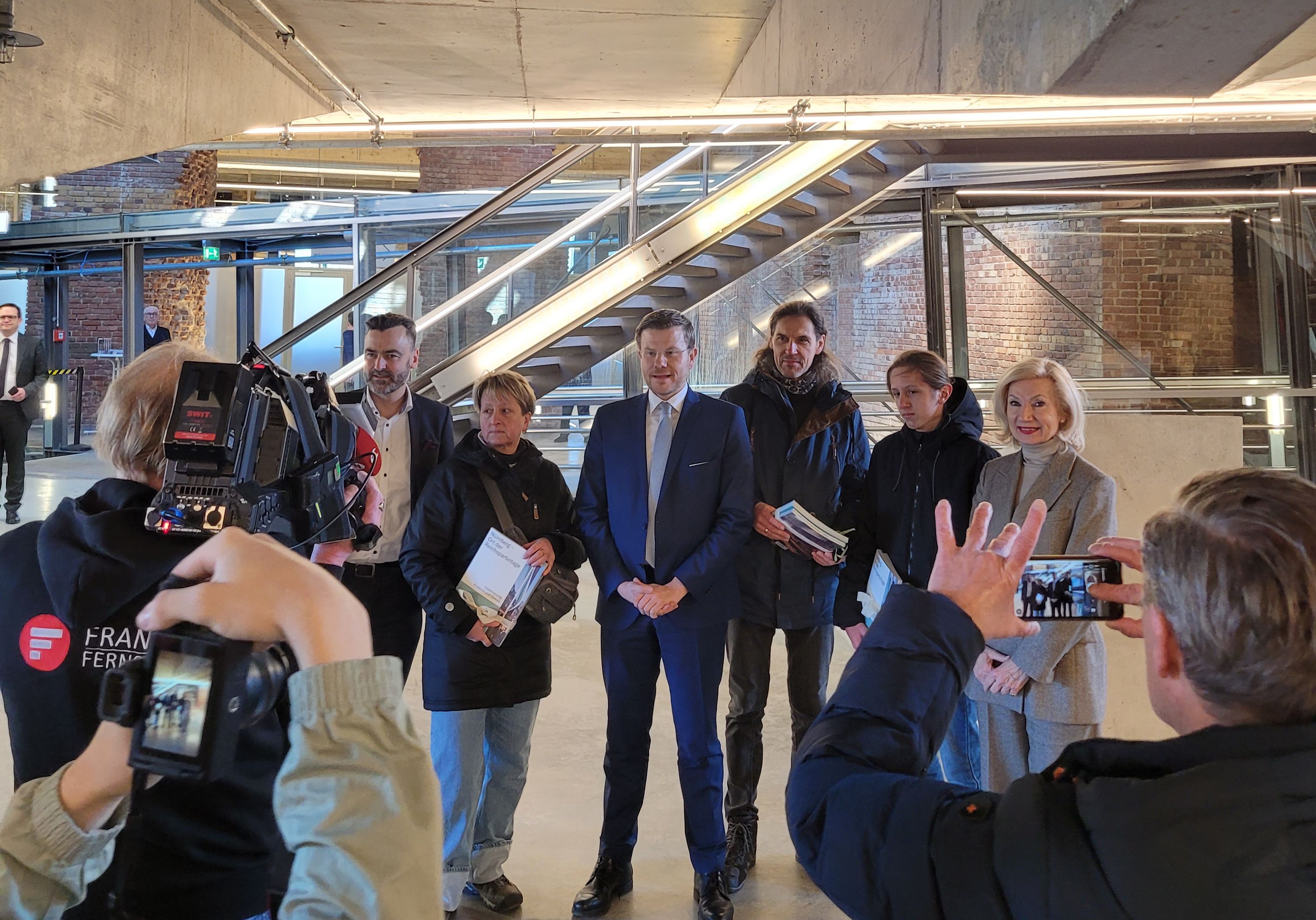 Die Fertigstellung des im Umbau befindlichen Dokumentationszentrums Reichsparteitagsgelände schreitet sichtbar voran und hat mit der Eröffnung des neuen Foyerbereichs nun einen wichtigen Meilenstein passiert – seit heute können die Besucherinnen und Besucher wieder offiziell über den Haupteingang ins Haus gelangen. Oberbürgermeister Marcus König und Kulturbürgermeisterin Prof. Dr. Julia Lehner haben einige der ersten Gäste begrüßt.