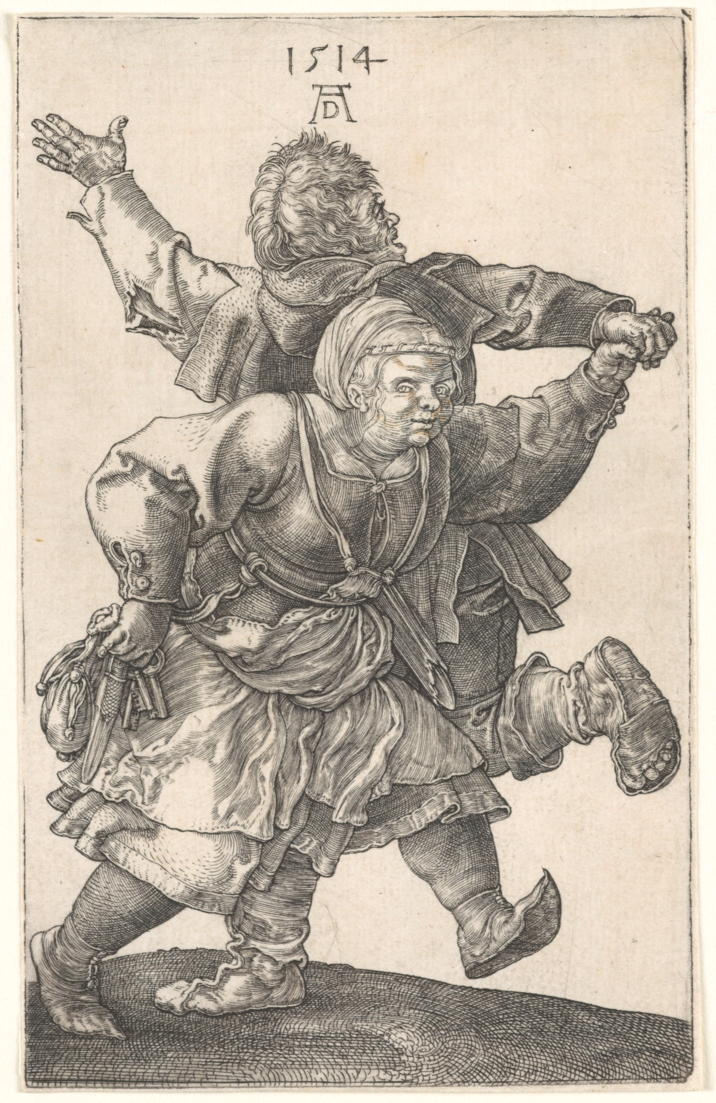 Albrecht Dürer schuf mehrere Kupferstiche mit Bauerndarstellungen, allerdings nur im kleinsten Bildformat. Zu Lebzeiten Dürers stellten Bauern die Mehrheit der Bevölkerung, hatten jedoch kein politisches Mitspracherecht und rangierten an unterster Stelle des Gesellschaftssystems. Ihr Leben war geprägt von Leibeigenschaft, Abgabenleistungen und Armut. So wuchs unter den Bauern der Unmut über ihre Situation. Seit dem Spätmittelalter kam es immer wieder zu lokalen Aufständen. Ermutigt durch die protestantische Bewegung, führten die Unruhen ab 1524 zum Deutschen Bauernkrieg. 1525 erreichte der Krieg Franken. Die Bauern forderten grundlegende Rechte, festgehalten in den „Zwölf Artikeln der Bauernschaft“ (1525). Sie verlangten unter anderem mehr Mitbestimmung und weniger Abgaben sowie die Abschaffung der Leibeigenschaft. Doch die Fürsten schlugen die Aufstände gewaltsam nieder. Auch Martin Luther positionierte sich schließlich eindeutig gegen die Aufständischen – und mit ihm wohl auch Dürer: Seine genau beobachteten Genredarstellungen aus ganz verschiedenen Schaffensphasen schreiben die negativ konnotierten Stereotype letztlich fort.