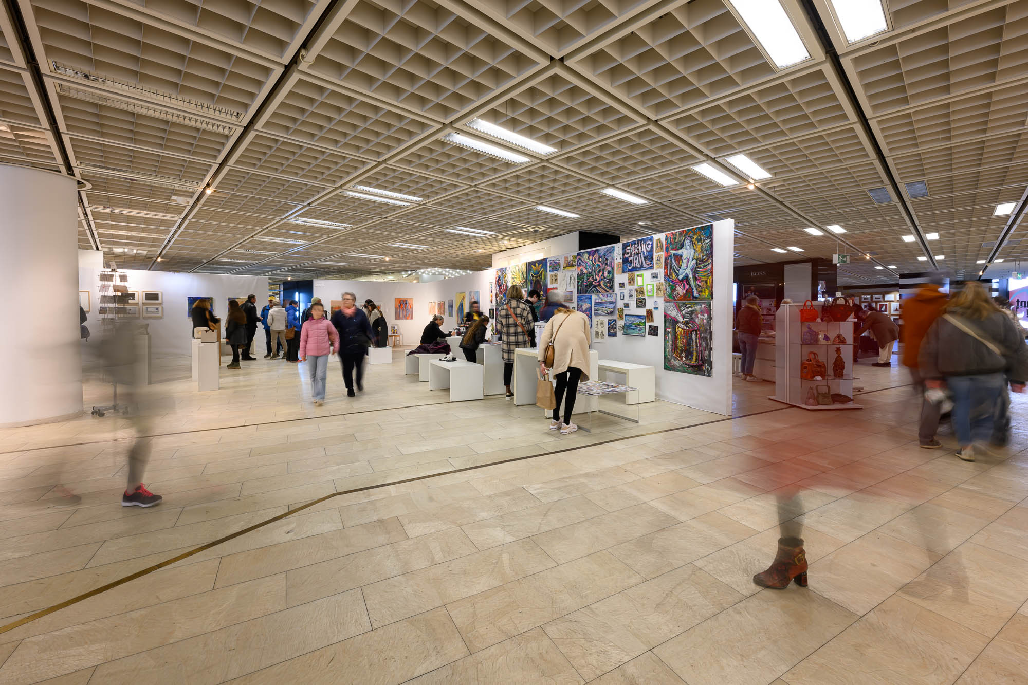 Erstmals öffneten seit der Schließung des Kaufhauses im Juni 2023 wieder die großen Eingangstüren in der Königstraße und der Breiten Gasse. Zwölf Nürnberger Galerien und Kunstvereine zeigten und verkauften in der Ausstellungsarchitektur des Kollektivs TAT aus Wien zeitgenössische Kunst. Vertreten waren klassische Galerien wie Oechsner, VON&VON sowie Bode, Künstlerverbände wie BBK und GEDOK ebenso wie die Vereine Edel-Extra, Kohlenhof und Der Kreis und das renommierte Nürnberger Institut für Moderne Kunst. Die Slow Art Galerie war mit einem bunten Angebot ebenso vertreten wie die Werkstattgalerie und der Kunstraum des Konfuzius-Instituts Nürnberg-Erlangen e. V. In zwei Pop-up-Stores präsentierten und verkauften der Nürnberger Designverein und das Kreativ-Kollektiv Team Sanity Base ausgefallene Designs aus den Bereichen Print, Produkt, und Fashion. Die poppige Medienkunst von Tamiko Thiel regte die Passanten in der Königstraße zu spielerischer Interaktion an, eine Top-20-Auswahl von Plakaten aus dem Plakatwettbewerb „Werbung für die Demokratie“ wurde in der Pfannenschmiedsgasse präsentiert und am Turm von raumlaborberlin lässt der Künstler Raul Walch nun zarte pastellfarbige Blüten wachsen, die den Frühling einleiten sollen.