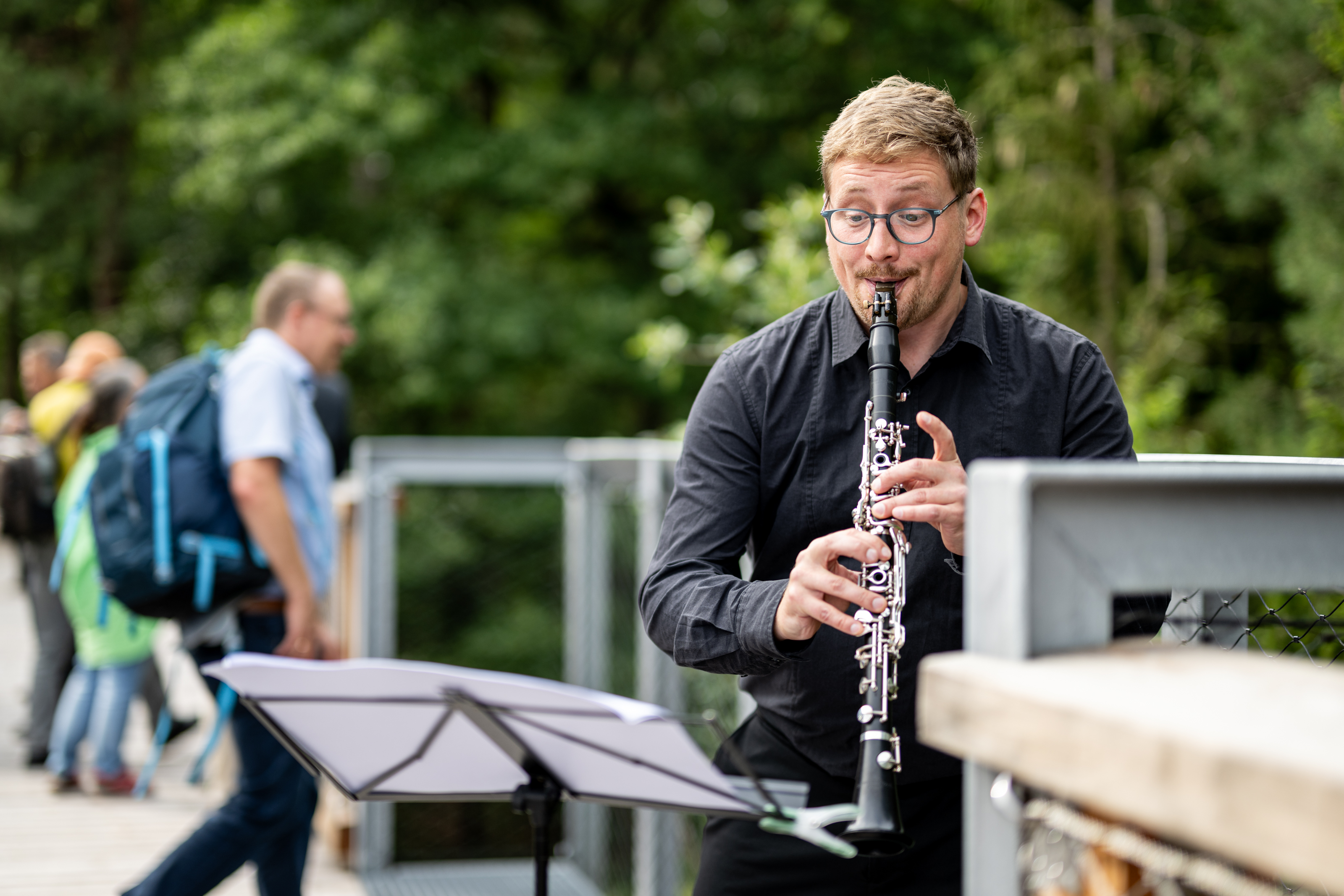 An der Waldschänke angekommen, erwartet die Gäste eine musikalische Darbietung von Musikerinnen und Musikern der Nachhaltigkeitsinitiative Phil-CO2 der Staatsphilharmonie Nürnberg. Nach der Vorspeise folgt eine Führung über den Klimawaldpfad. In bis zu 20 Metern Höhe bietet der im Sommer 2024 eröffnete Pfad ein einmaliges Walderlebnis mit neuen Perspektiven auf Tiere und Pflanzen.
