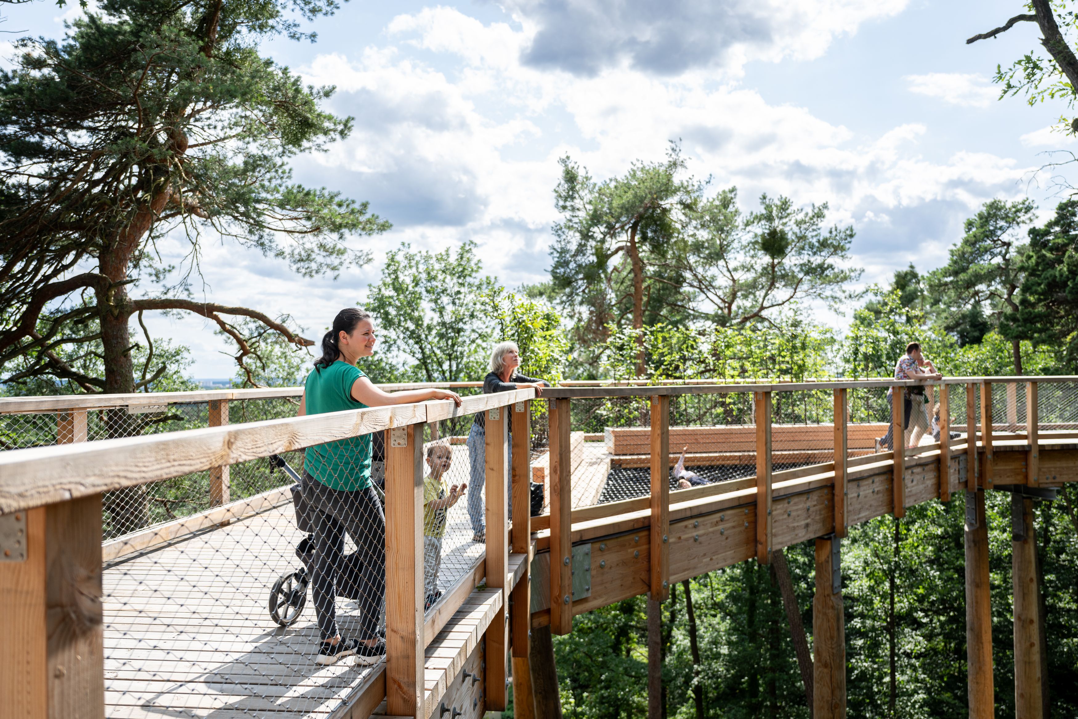 Der Klimawaldpfad führt Gäste steigungsfrei durch alle Stockwerke des Waldes – vom Boden bis zur Krone. An Erlebnis- und Spielstationen können Besucherinnen und Besucher sich ausprobieren und den Wald aus einer neuen Perspektive entdecken. Ruheplätze laden zum Verweilen und Genießen ein. Ermöglicht wurde der Klimawaldpfad durch eine Förderung der Zukunftsstiftung der Sparkasse Nürnberg in Höhe von 4,1 Millionen Euro. tom