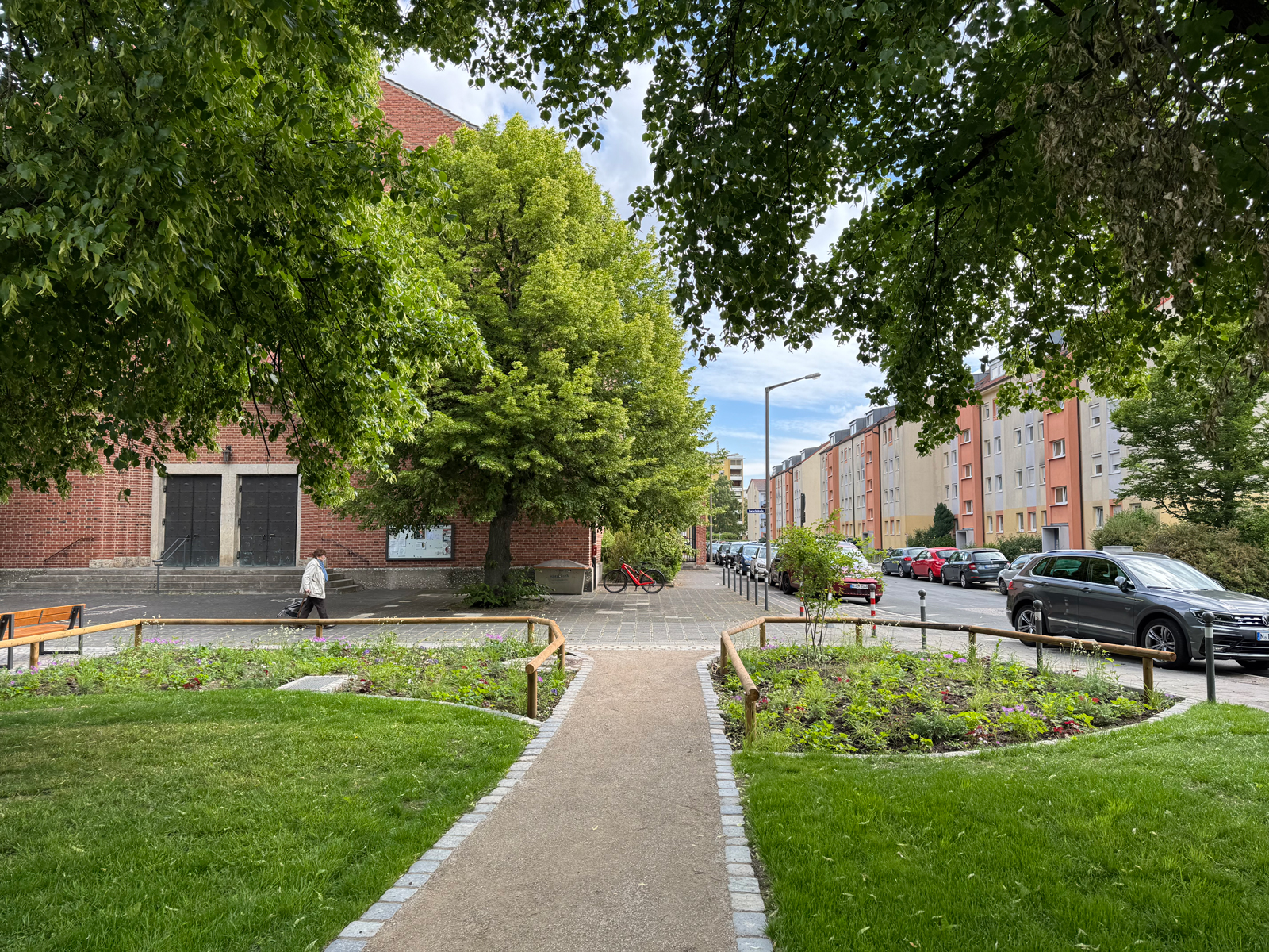 Die Stadt Nürnberg hat am Montag, 26. Mai 2025, den umgestalteten Ismail-Yaşar-Platz im Ortsteil Gleishammer der Öffentlichkeit übergeben. Im vergangenen halben Jahr wurde die Fläche umfassend durch den Servicebetrieb Öffentlicher Raum Nürnberg (Sör) saniert. Die neu gestaltete, zentrale Grünfläche wurde um 285 Quadratmeter erweitert und bietet den Bewohnerinnen und Bewohnern im Quartier eine verbesserte Aufenthaltsqualität.