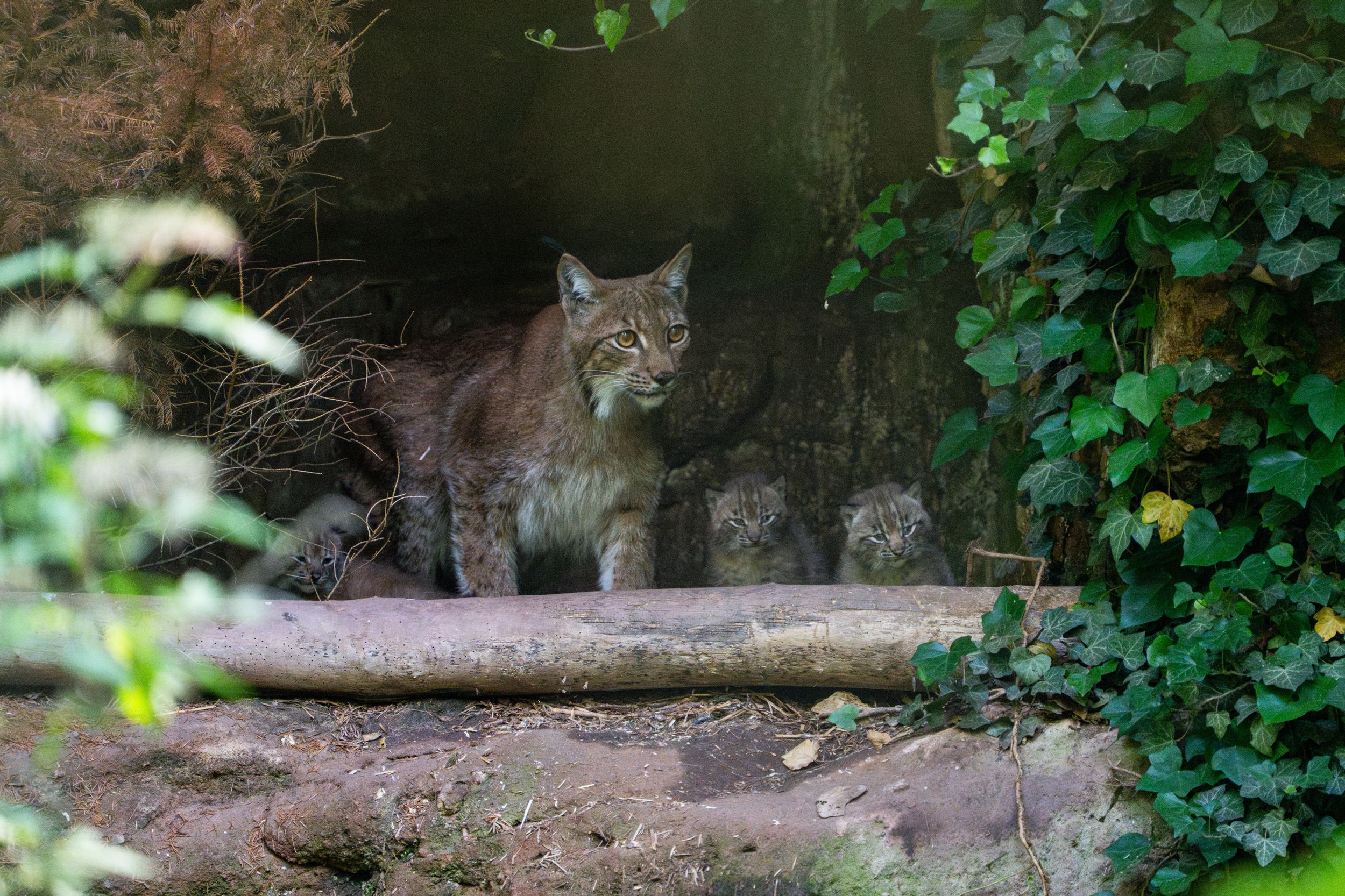 Bei den Karpatenluchsen (Lynx lynx carpathicus), einer Unterart des Eurasischen Luchses, im Tiergarten der Stadt Nürnberg gibt es Nachwuchs: Weibchen Desari hat vor wenigen Wochen drei Jungtiere zur Welt gebracht. Welches Geschlecht sie haben, ist noch nicht klar, da die Tiere nicht bei der Aufzucht gestört werden sollen. Noch halten sich die Kleinen hauptsächlich in einer Felsnische auf, sie zeigen sich inzwischen aber immer öfter den Besucherinnen und Besuchern.