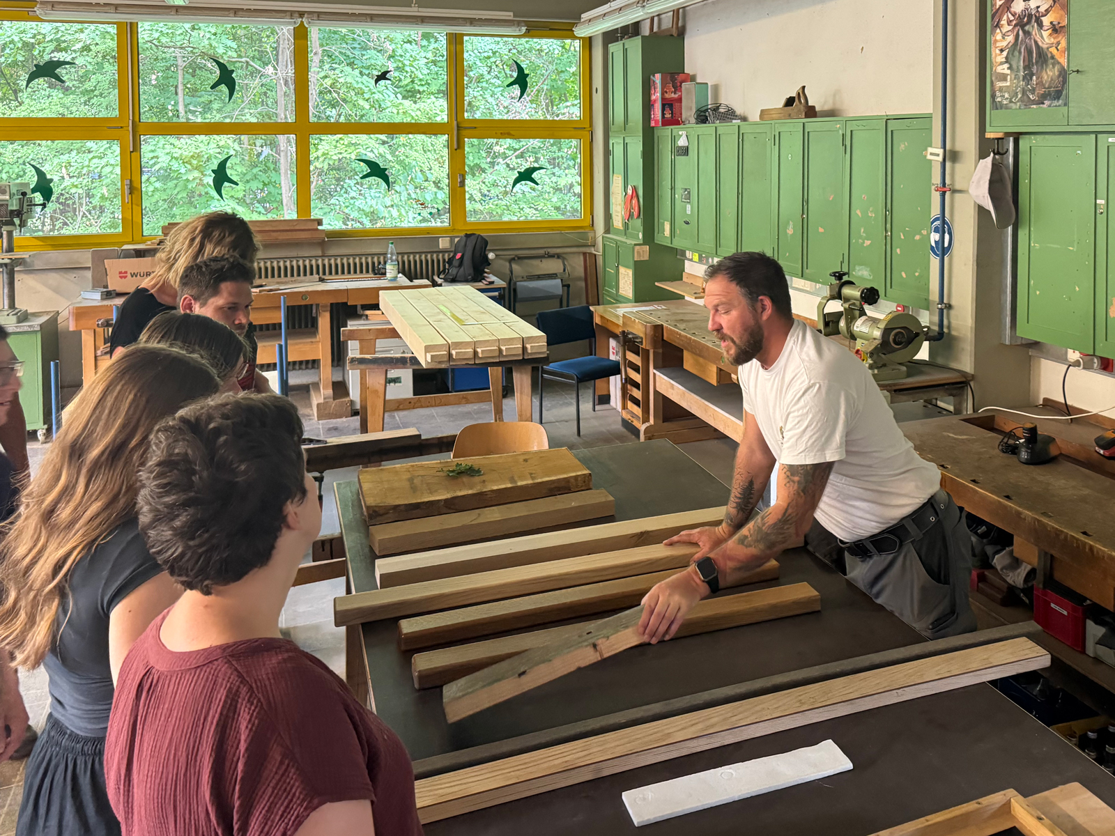 In der Schreinerei konnten die Besucherinnen und Besucher jeden Schritt der Banklatten-Produktion hautnah erleben: Vom Zuschnitt des Holzes über das Hobeln bis hin zum Lackieren erklärten Sör-Mitarbeitende mit viel Engagement ihre Arbeit. Auch für sie war der Besuch eine willkommene Abwechslung vom Arbeitsalltag.