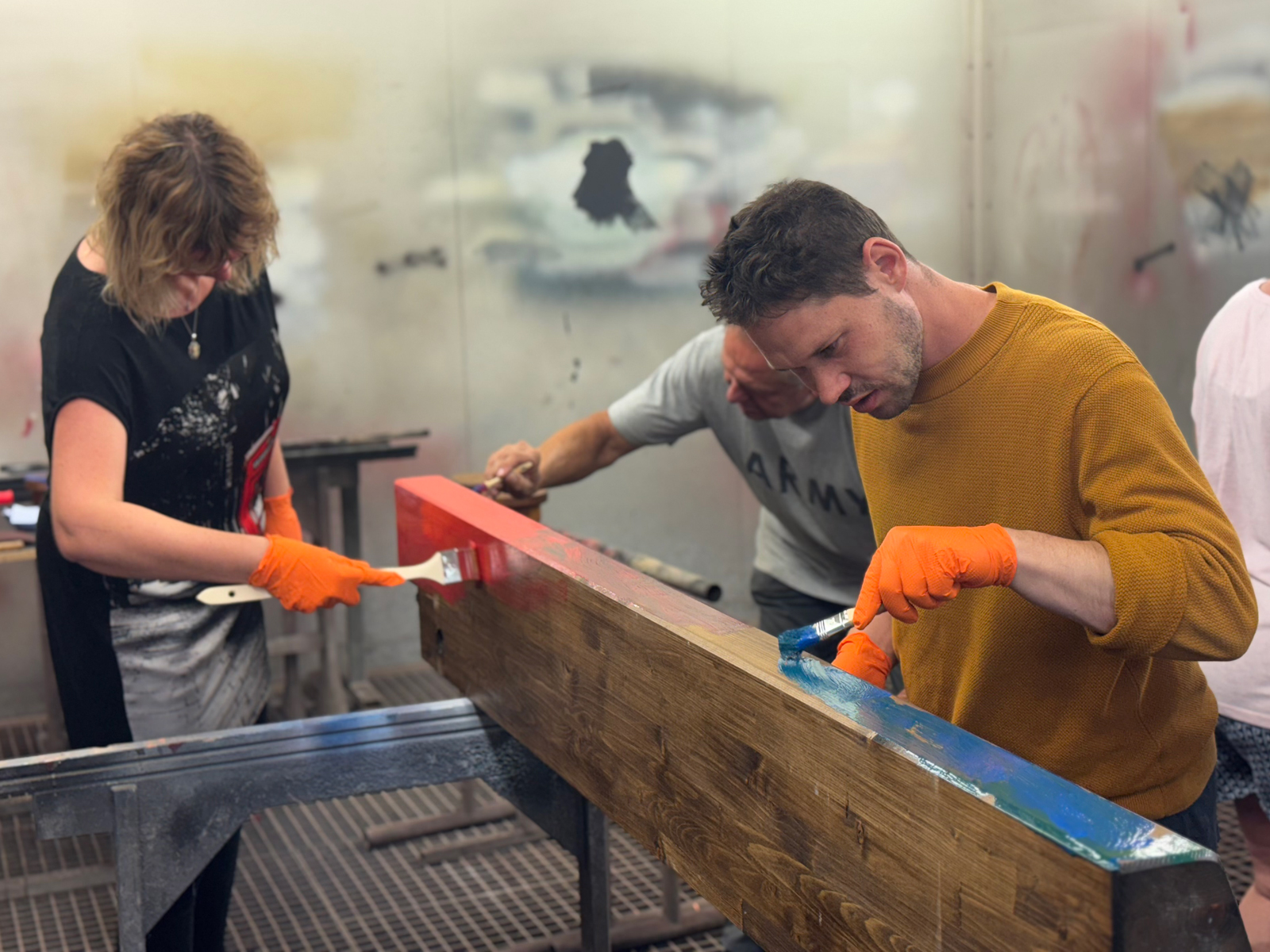 Nach dem Rundgang wurde gemeinsam eine alte Parkbank restauriert. Der Banktyp gehört zwar nicht mehr zum aktuellen Stadtmobiliar, doch nach der liebevollen Überarbeitung und farbenfrohen Bemalung erhält die Bank nun ein zweites Leben: Sie wird künftig auf dem Gelände des noris-inklusion-Werks Süd in Langwasser stehen – als Symbol für gelebte Inklusion und erfolgreiche Zusammenarbeit.