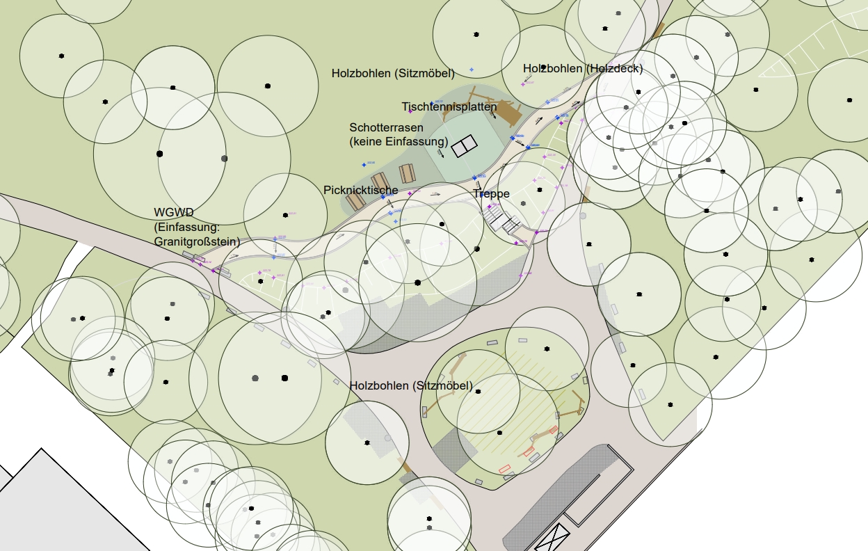Der Park bekommt im Zuge der Umgestaltung eine neue Grünstruktur, die vor allem durch die Neupflanzung von heimischen Sträuchern als Unterwuchs im bestehenden Baumbereich umgesetzt wird. Zudem dienen die neuen Sträucher als Unterschlupf und Nahrungsquelle für Vögel.