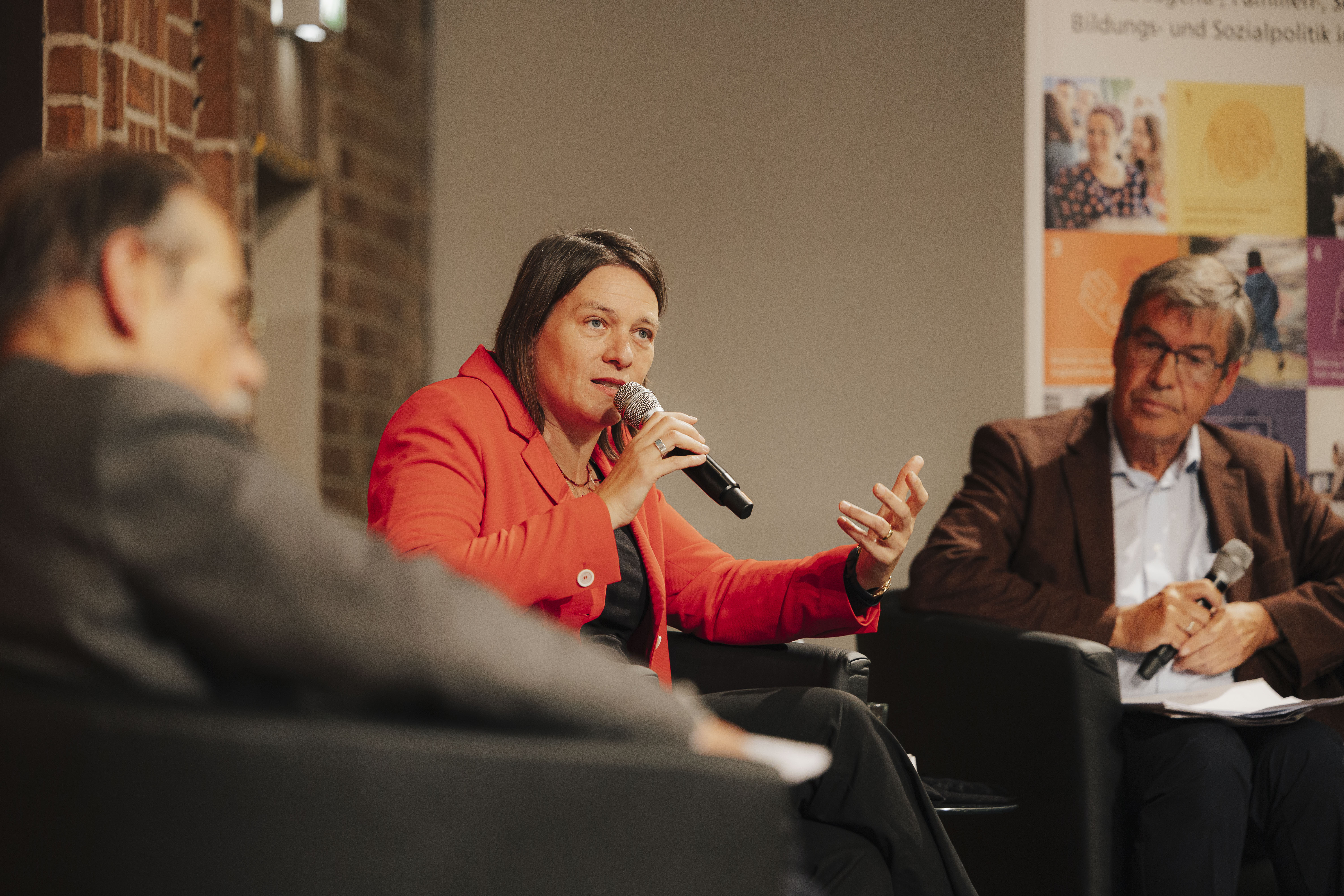 Nach einem Vortrag von Historikerin Jennifer Oevermann von Geschichte für Alle e. V., die die Ursprünge des Nürnberger Almosenwesens nachzeichnete, schloss Prof. Dr. Georg Cremer, langjähriger Generalsekretär des Deutschen Caritasverbands, mit einem Einblick in aktuelle Diskussionen über und die Herausforderungen für den Sozialstaat an. Die anschließende Diskussion der beiden Vortragenden mit Nürnbergs Sozialreferentin Elisabeth Ries widmete sich dem Spannungsfeld zwischen Fürsorge, Teilhabe und Grenzen der Unterstützung und der Frage, wie die Zukunft kommunaler Sozialpolitik gestaltet werden kann.