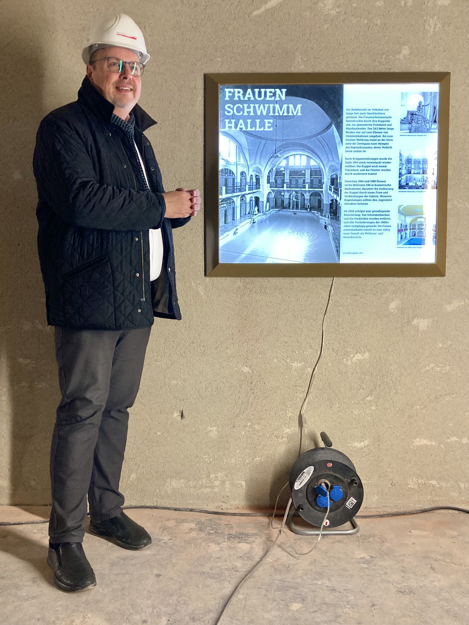 Bürgermeister Vogel: „Die Tafeln sind nicht Bestandteil der Wiederbelebung des Bads selbst, aber es ist – so finde ich – ein wichtiger Teil zur Geschichte des Volksbads, welche den Besucherinnen und Besuchern vermittelt werden soll. Es ist eine tolle Sache, damit die Geschichte des Volksbads vielen Besucherinnen und Besuchern präsent bleibt. Die Tafeln können aber nur über Spenden ermöglicht werden. Wir sind das Volksbad, genau deshalb bitte ich auch in diesem Fall um Ihre Unterstützung.“