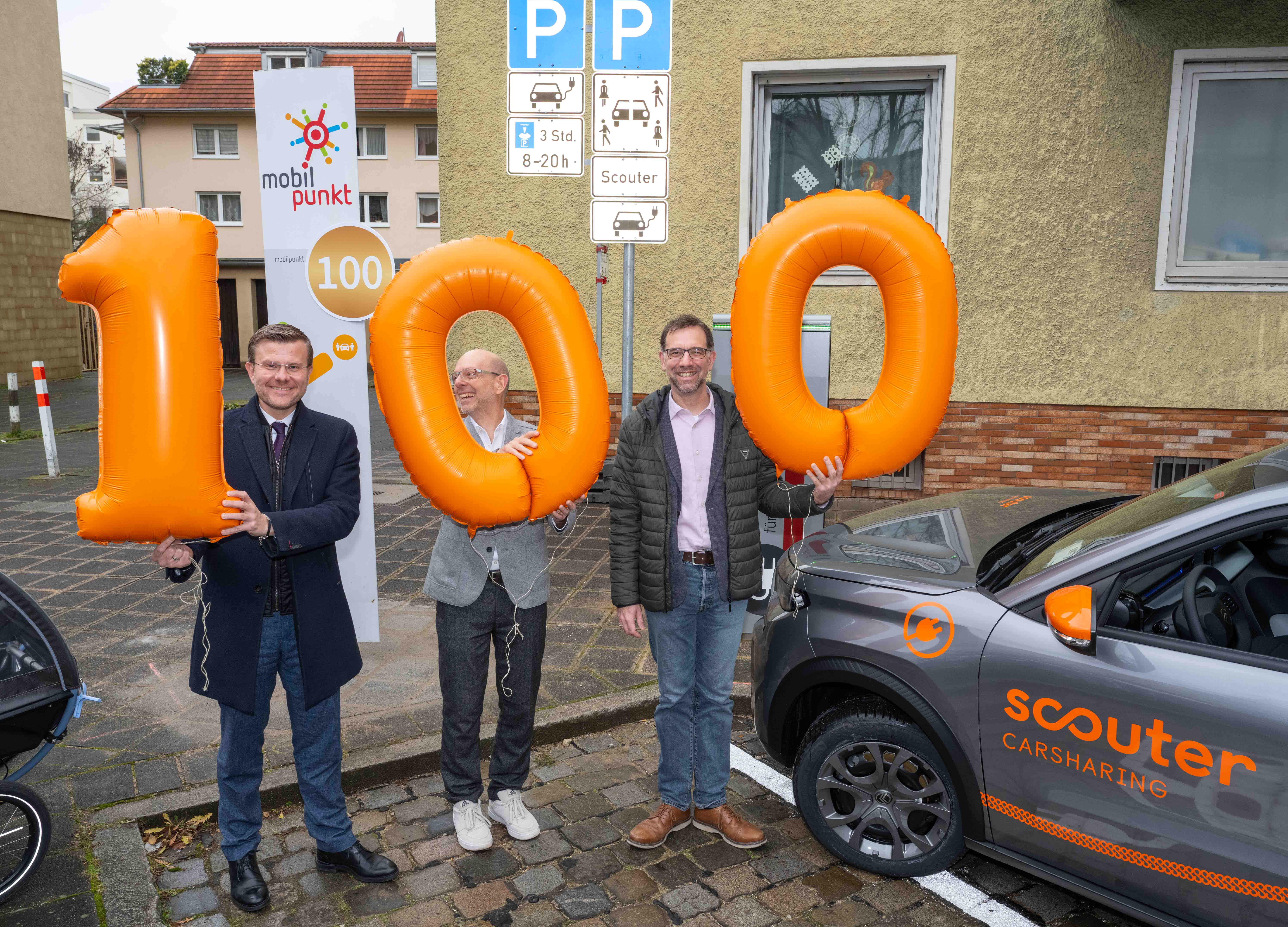 Mit der Eröffnung des 100. Mobilpunkts macht die Stadt Nürnberg einen weiteren wichtigen Schritt auf dem Weg zur Verkehrswende. Oberbürgermeister Marcus König, Planungs- und Baureferent Daniel F. Ulrich sowie Thomas Großnann, Geschäftsführer der scouter Carsharing GmbH, haben am heutigen Montag, 8. Dezember 2025, den neuen Mobilpunkt Am Stadtpark 111 eröffnet. In den Wohngebieten innerhalb des Bundesstraßenrings B4R ist von jedem Standort aus in höchstens 350 Metern Entfernung ein Carsharing-Fahrzeug verfügbar.
