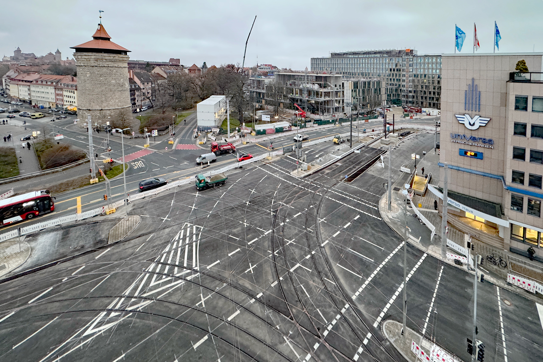 Im Jahr 2026 werden die Arbeiten insbesondere in der Pirckheimerstraße, auf der stadteinwärtigen Seite der Bayreuther Straße sowie am Berliner Platz fortgesetzt. Die verbleibenden Hauptmaßnahmen betreffen hier vor allem den Gleis- und Straßenbau. Die Fertigstellung des Gesamtprojekts „Ausbau Bayreuther Straße“ ist für die zweite Jahreshälfte 2026 vorgesehen. tom