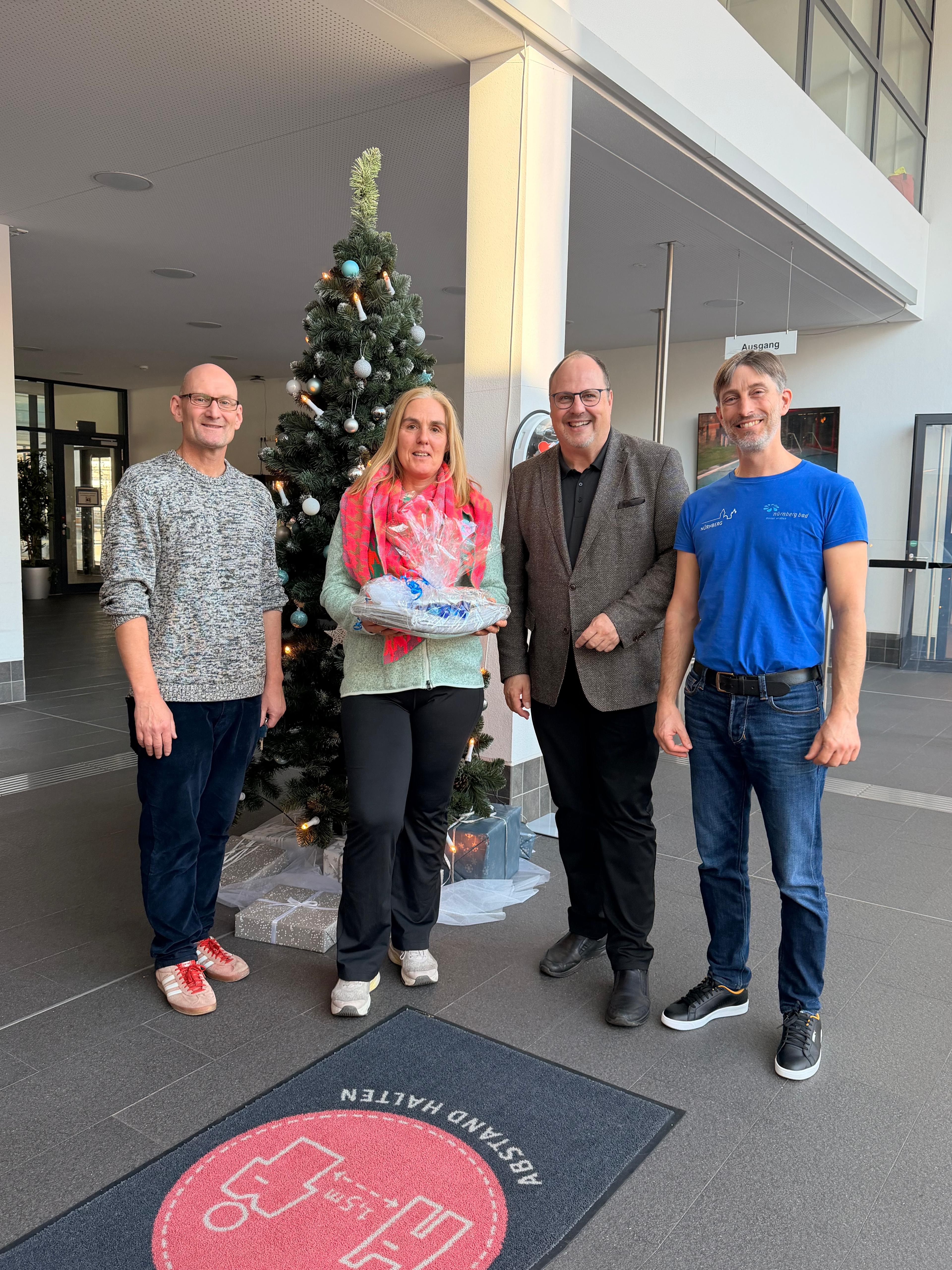Ein besonderer Meilenstein für NürnbergBad: Im Jahr 2025 haben die Nürnberger Saunen erstmals die Marke von 100 000 Besuchen überschritten. Mitte Dezember wurde dieses Ereignis feierlich begangen. Bürgermeister Christian Vogel, der kaufmännische Werkleiter Matthias Bach sowie der technische Werkleiter Helmut Blaß überreichten der 100 000. Besucherin, Saskia Bartelmann, die jede Woche die Damensauna besucht, als sichtbares Zeichen der Wertschätzung ein reich gefülltes Geschenkpaket.