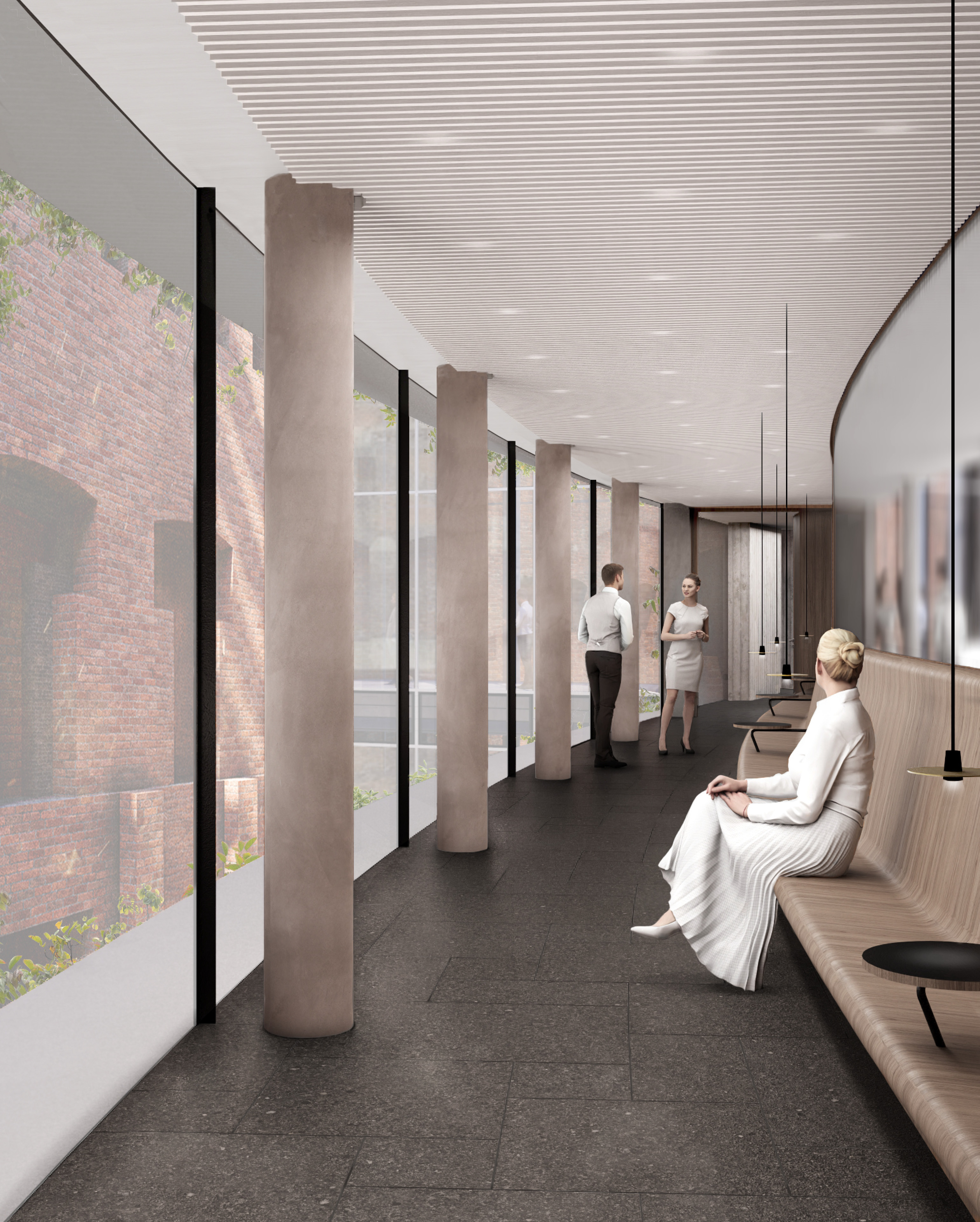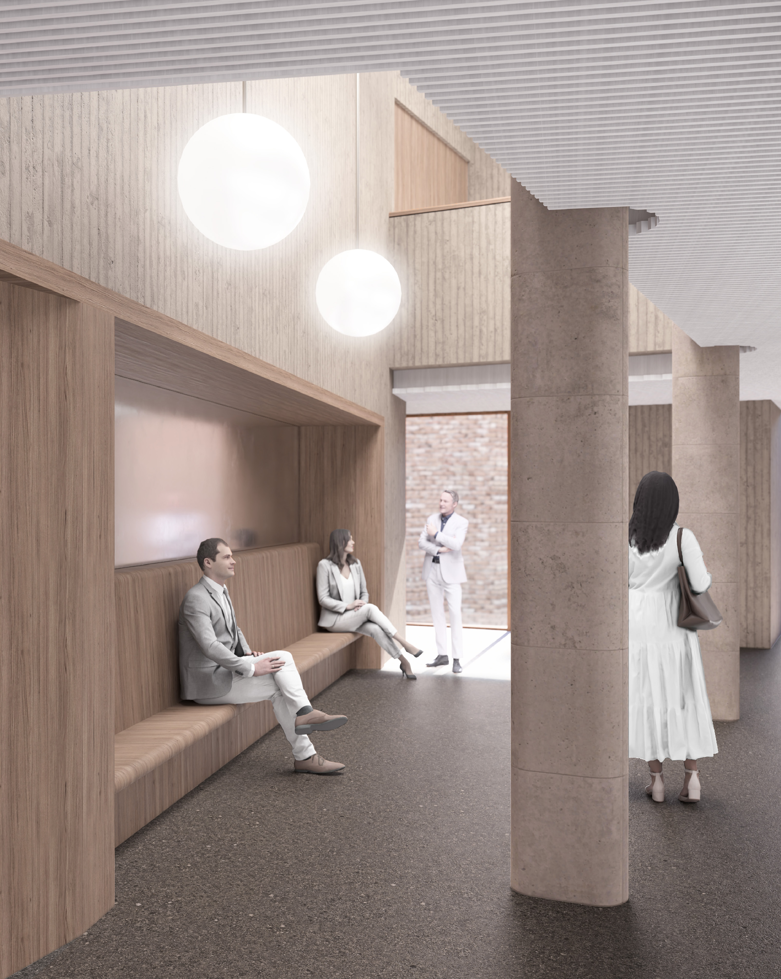 Künftig wird das Publikum das Theater, ebenso wie die angrenzenden Ermöglichungsräume für Kunst und Kultur, über den Arkadengang des Torsos betreten. Die wesentlichen Publikumsbereiche wie Eingangshalle, Abendkasse, Foyerflächen, Gastronomie, Garderoben und WCs befinden sich ebenfalls im Bestandsgebäude.