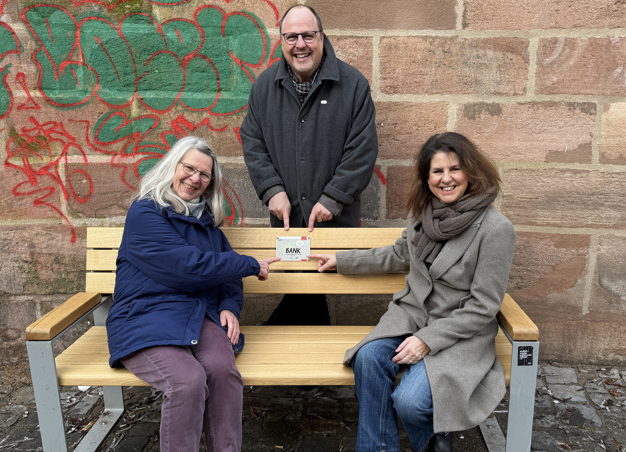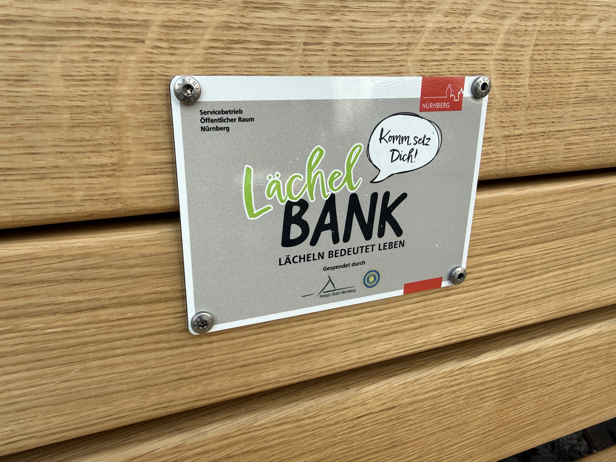 Bürgermeister und Erster-Sör-Werkleiter Christian Vogel bedankt sich für Idee und Unterstützung: „Die ‚Lächelbank‘ ist ein starkes Zeichen für Mitmenschlichkeit im öffentlichen Raum. Sie zeigt, wie aus einem guten Impuls ein Ort entstehen kann, der vielen Menschen guttut. Mein Dank gilt dem Hospiz-Team Nürnberg für die Idee und dem Inner Wheel Club Sibylla Merian für die finanzielle Unterstützung.“