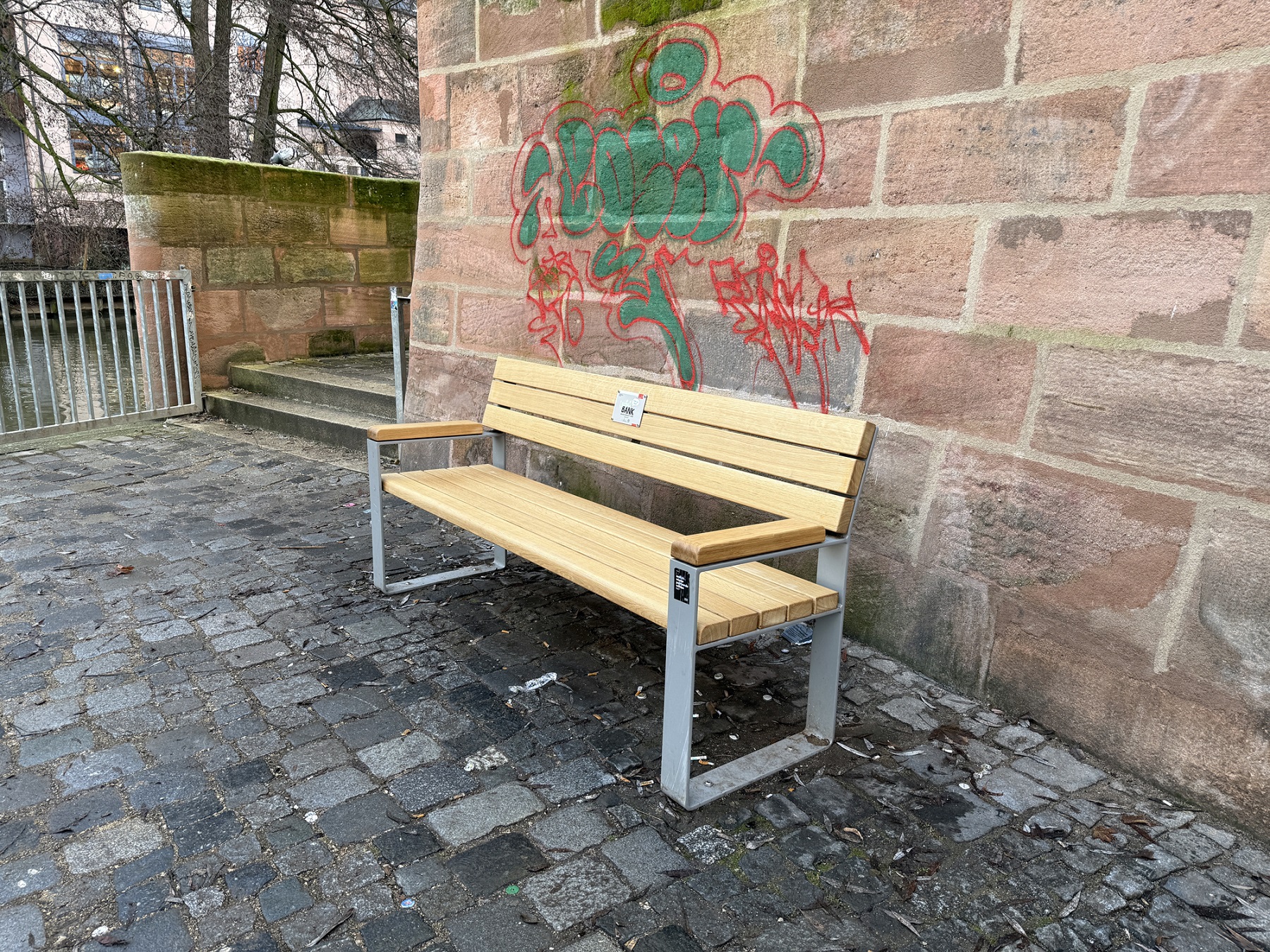 Mit der „Lächelbank“ erhält die Liebesinsel einen zusätzlichen Aufenthaltsort, der zum Verweilen, Nachdenken und Durchatmen einlädt. Sie richtet sich an alle Menschen, die dort unterwegs sind, und setzt ein sichtbares Zeichen für Achtsamkeit, Zusammenhalt und Zuversicht im öffentlichen Raum. Die Liebesinsel ist eine kleine, zentral gelegene Grünfläche in der Nürnberger Altstadt zwischen Hauptmarkt und Maxbrücke. Mit ihrem Blick auf die Pegnitz und ihrer ruhigen Atmosphäre ist sie ein beliebter Ort zum Durchatmen mitten in der Stadt. Die „Lächelbank“ fügt sich in diese besondere Umgebung ein und kann ab sofort von allen genutzt werden. Eine zweite „Lächelbank“ wird demnächst am Sebalder Platz aufgestellt. Sie findet ihren schattigen Platz direkt neben der bereits bekannten „Plauderbank“ unter der großen Platane.