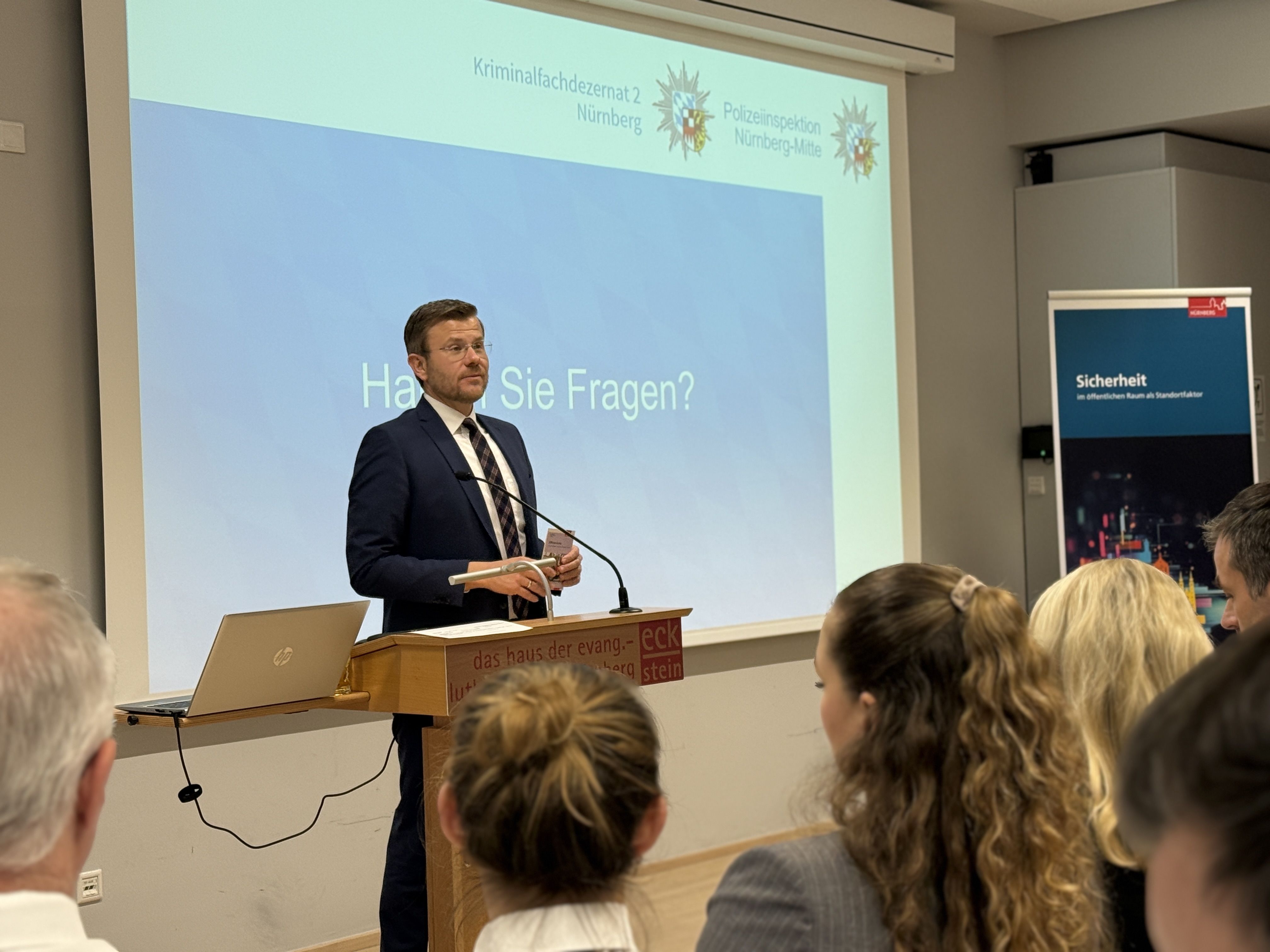 Im Mittelpunkt des „Sicherheitsforums Innenstadt“ standen die Bedeutung von Sicherheit im öffentlichen Raum als Standortfaktor sowie konkrete Informationen für Unternehmen rund um die Themen Ladendiebstahl und Kreditkartenbetrug. Gemeinsam informierten das Polizeipräsidium Mittelfranken und das Direktorium Bürgerservice, Digitales und Recht über die zahlreichen Maßnahmen zur Verbesserung der objektiven Sicherheit und Stärkung des Sicherheitsgefühls.
