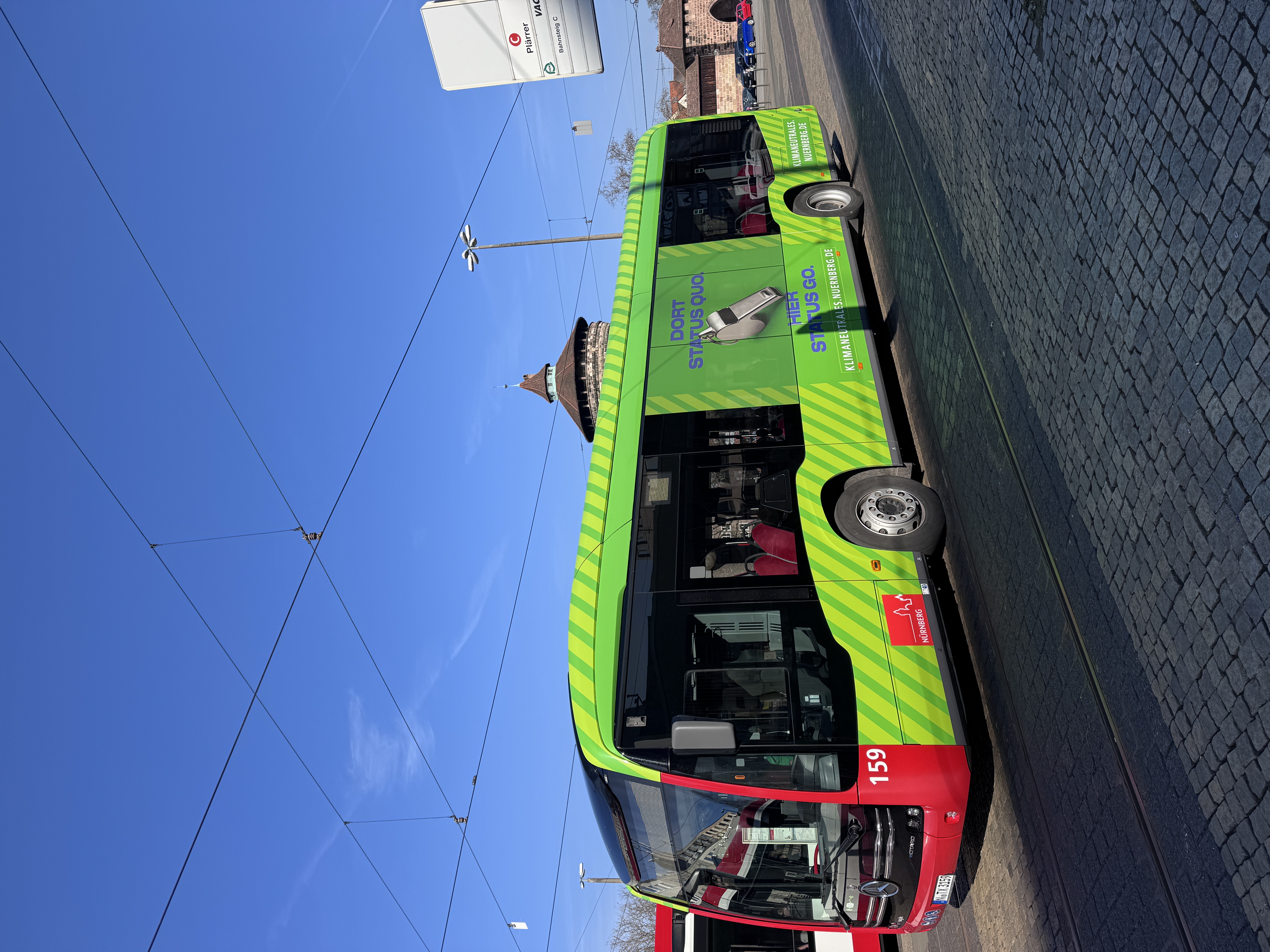 Auffällig gestaltet und mit einer klaren Botschaft unterwegs: Unter dem Slogan „Dort Status quo – hier Status Go“ fährt seit einigen Wochen ein Elektrobus der VAG Verkehrs-Aktiengesellschaft Nürnberg (VAG) im Design der städtischen Klimakampagne durch Nürnberg. Der sogenannte Klimabus ist ein sichtbares Zeichen der im Oktober 2025 vom Referat für Umwelt und Gesundheit gestarteten Kampagne der Stadt Nürnberg. Die Kampagne informiert Bürgerinnen und Bürger, Unternehmen und Organisationen über konkrete Möglichkeiten zum Klimaschutz im Alltag und unterstützt sie bei der Umsetzung. Sie ist Teil der umfassenden Klimaschutzstrategie der Stadt Nürnberg. Neben dem Klimabus gehören dazu unter anderem Großplakate an Baustellen, Informationsveranstaltungen und Beratungsangebote. Ziel ist es, Menschen in der Stadt zu motivieren, sich aktiv am Klimaschutz zu beteiligen.