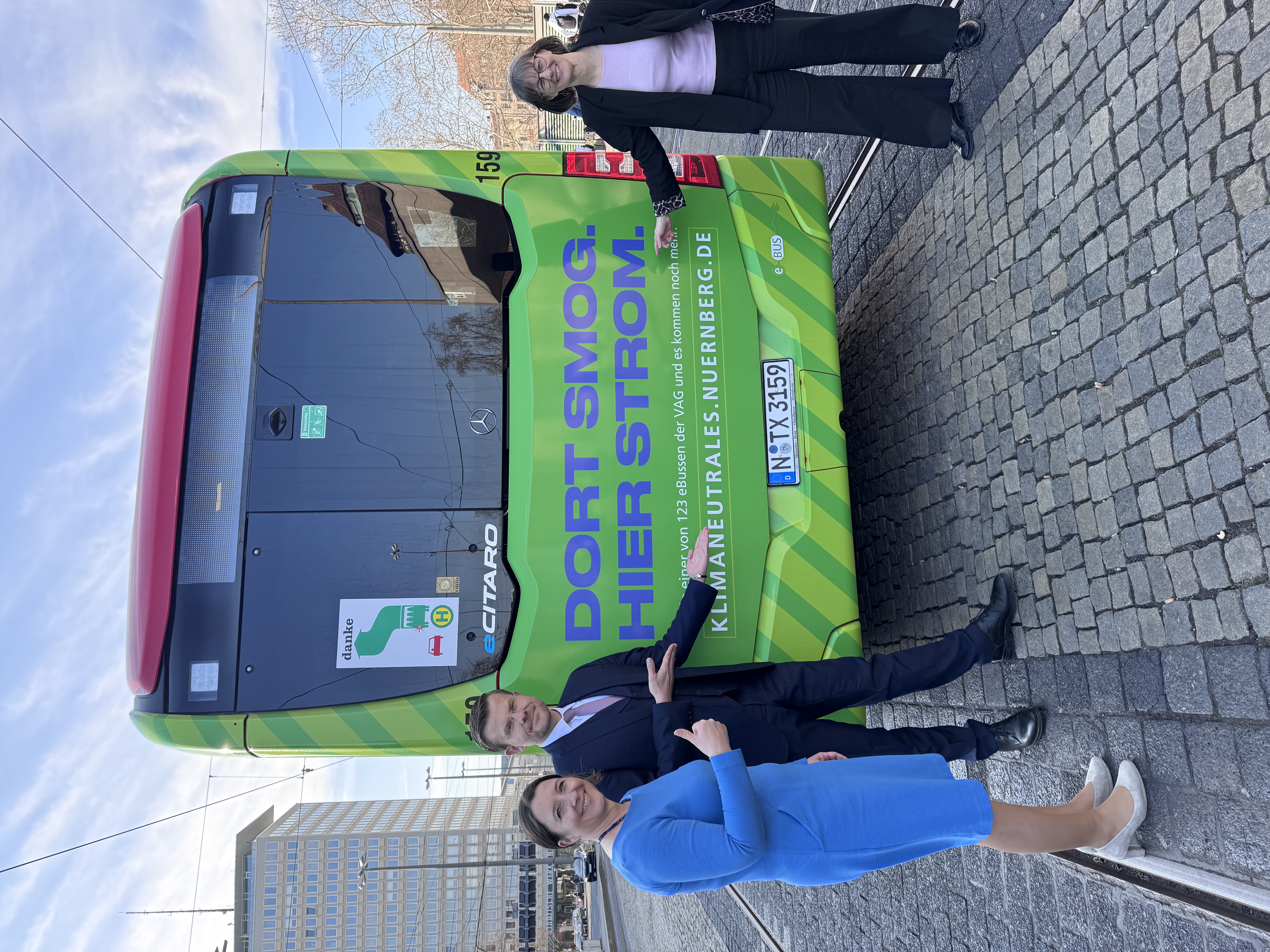 Britta Walthelm, Referentin für Umwelt und Gesundheit der Stadt Nürnberg, betont: „Mit dem E-Bus der VAG im Kampagnendesign bringen wir Elektromobilität im Nürnberger ÖPNV sichtbar auf die Straße. Der Bus ist Botschafter für unseren gemeinsamen Weg zur Klimaneutralität. Aufgefordert, sich zu beteiligen, sind Bürgerinnen und Bürger ebenso wie Menschen aus Verwaltung, Wirtschaft und Wissenschaft. Denn es ist klar, Klimaneutralität erreichen wir nur gemeinsam.“