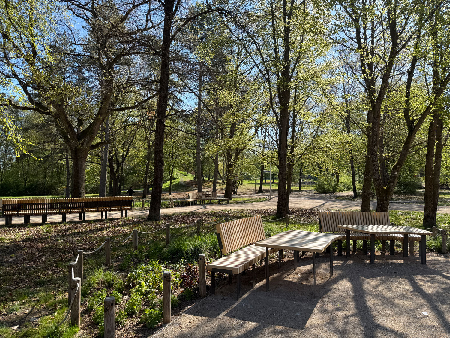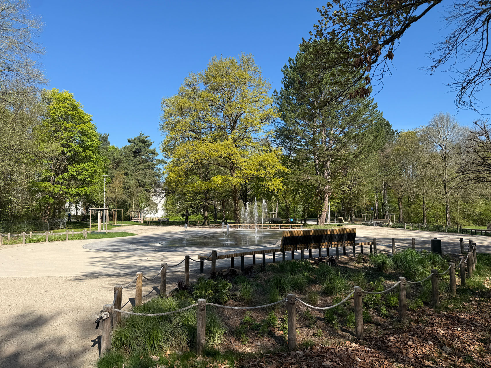 Zahlreiche Sitzgelegenheiten stehen zur Nutzung zu Verfügung. Die Bänke sind sowohl einzeln als auch in Gruppen angeordnet und laden so zum entspannten Verweilen sowie zum sozialen Miteinander ein. Verschiedene Möglichkeiten, miteinander zu spielen, bieten eine neue Boulebahn, Bodenschach und mehrere Spieltische. Die große zentrale Mitte ist mit Bodensprudlern versehen, die ab Mai, pünktlich zum Start der Brunnensaison, in Betrieb genommen werden.