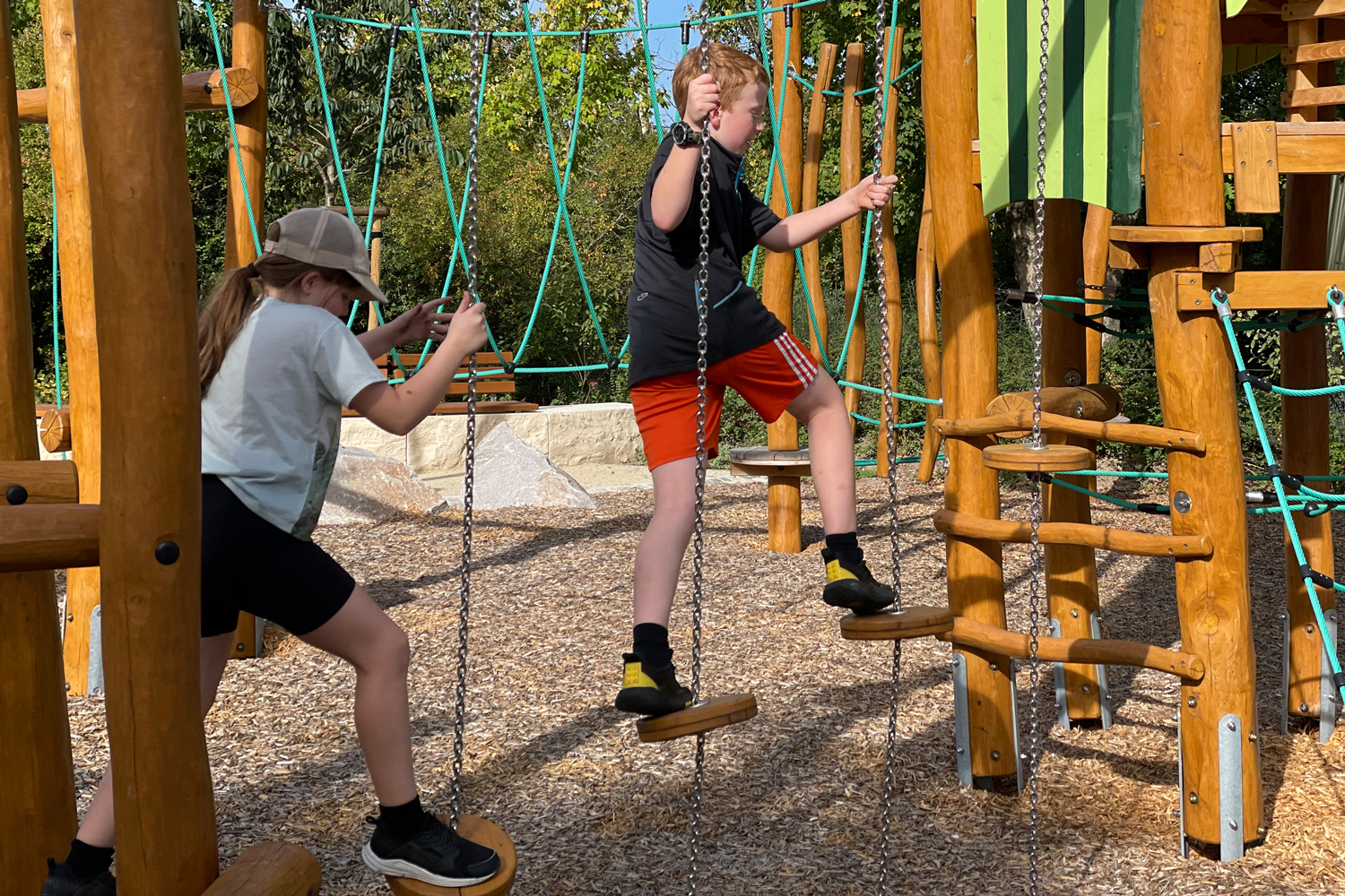 Der Planung ging eine intensive Kinderbeteiligung des Jugendamts voraus. Die beiden Beteiligungsveranstaltungen, bei denen Kinder und Eltern ihre Vorschläge für den ersten Spielplatz in Höfen einbringen konnten, wurden noch unter Corona-Bedingungen durchgeführt. Die nun umgesetzten Kinderwünsche umfassen unter anderem Möglichkeiten zum Klettern und Rutschen sowie eine Bahn, auf der man mit Rollern, Fahrrädern oder Skateboards fahren kann. Der Spielplatz ist für Kinder im Alter von sechs bis zwölf Jahren konzipiert und hat gleichzeitig die Qualitäten einer Grünanlage, da es in heißen Sommern wichtig ist, dass Bäume und Sträucher für Abkühlung und Schatten sorgen.