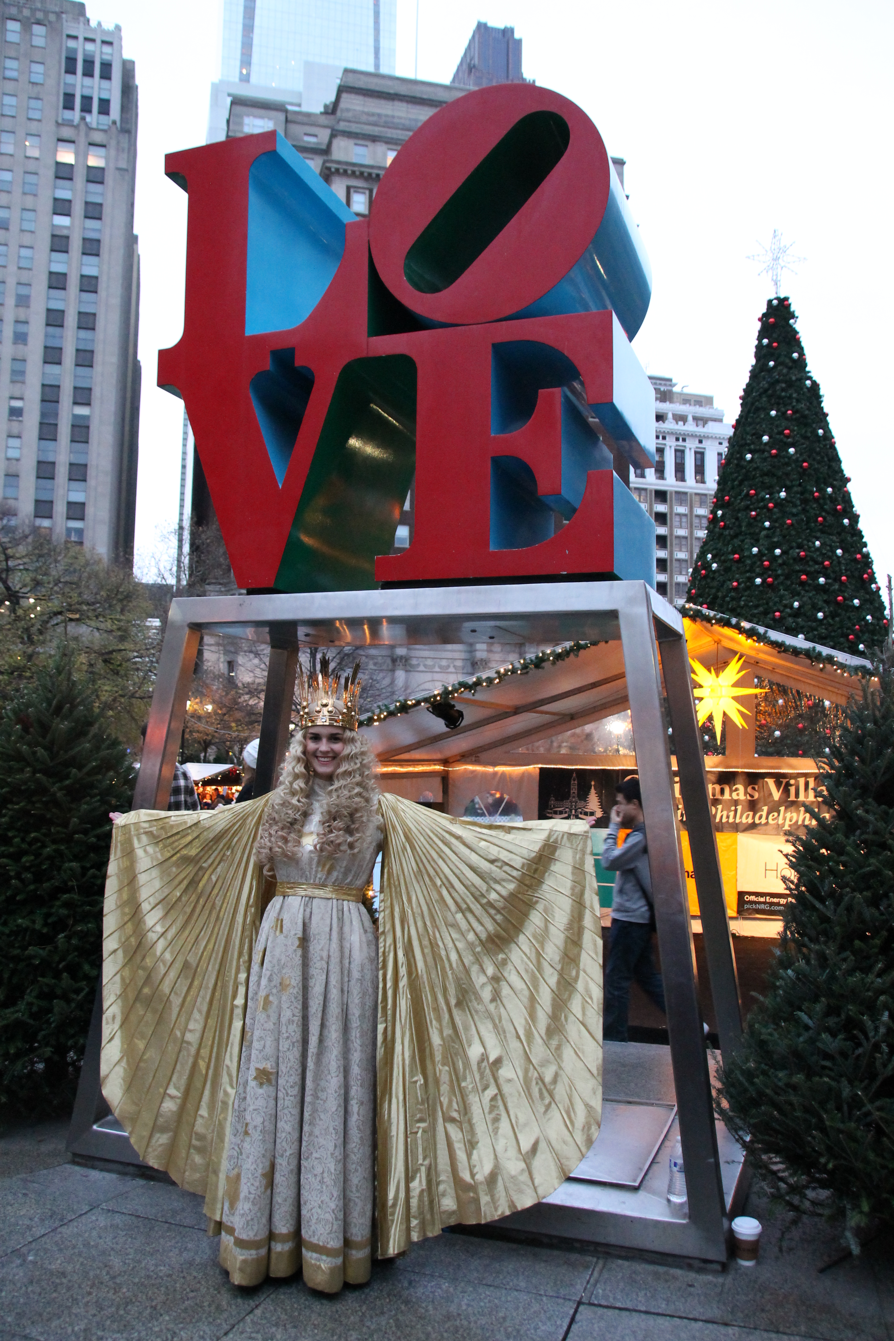 Das Christkind im Christmas Village in Philadelphia. Der Weihnachtsmarkt ist im Herzen der Stadt, auf dem Love Place, unweit des Rathauses gelegen.