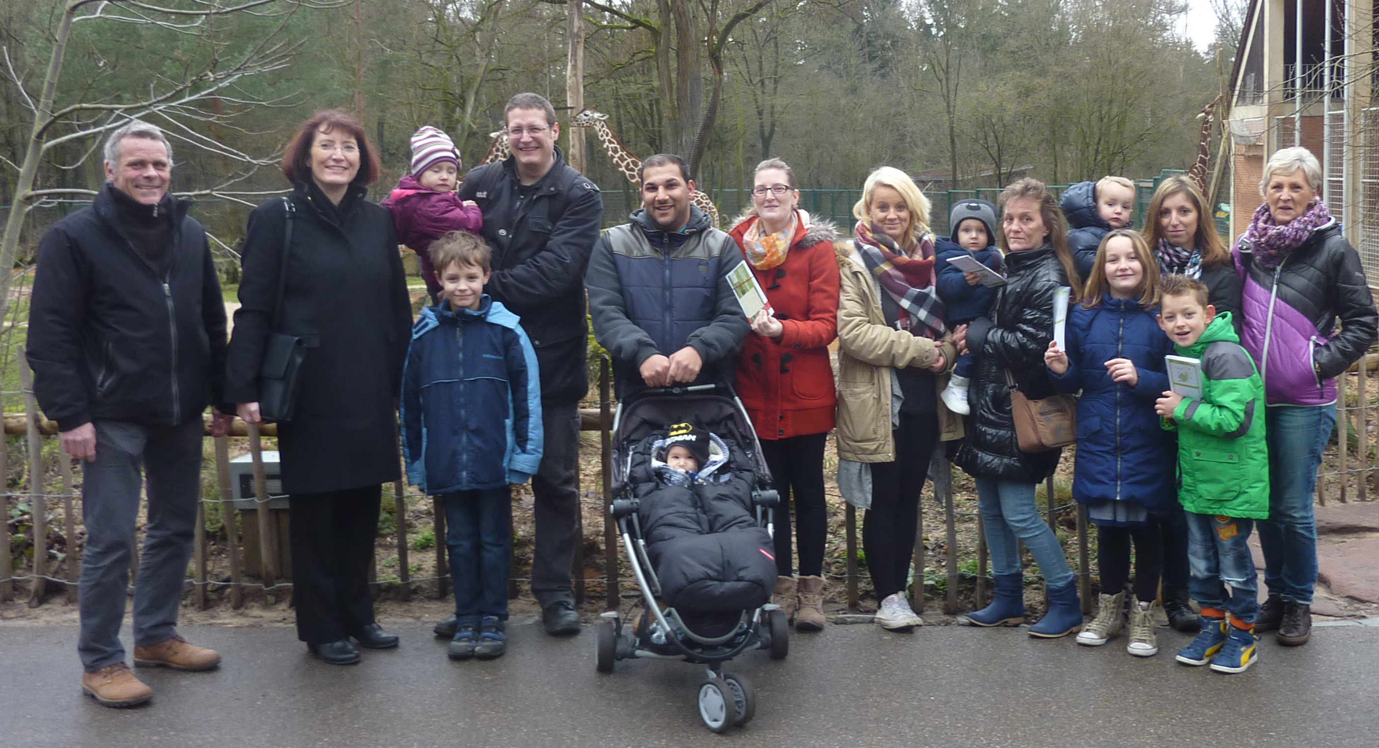 Zehn Nürnberger Familien können sich über freien Eintritt in den Tiergarten für ein Jahr lang freuen. Die Stadt Nürnberg bedankt sich damit für die Teilnahme an einer Elternbefragung zum Betreuungsbedarf von Kindern unter 3 Jahren. Jugendamtsleiterin Dr. Kerstin Schröder und Tiergartendirektor Dr. Dag Encke haben die Jahreskarten am heutigen Donnerstag, 11. Februar 2016, an vier der zehn Familien im Tiergarten übergeben. Die Eltern und Kinder konnten die Übergabe gleich für einen Zoobesuch nutzen. Den anderen Familien werden die Karten zugesandt.