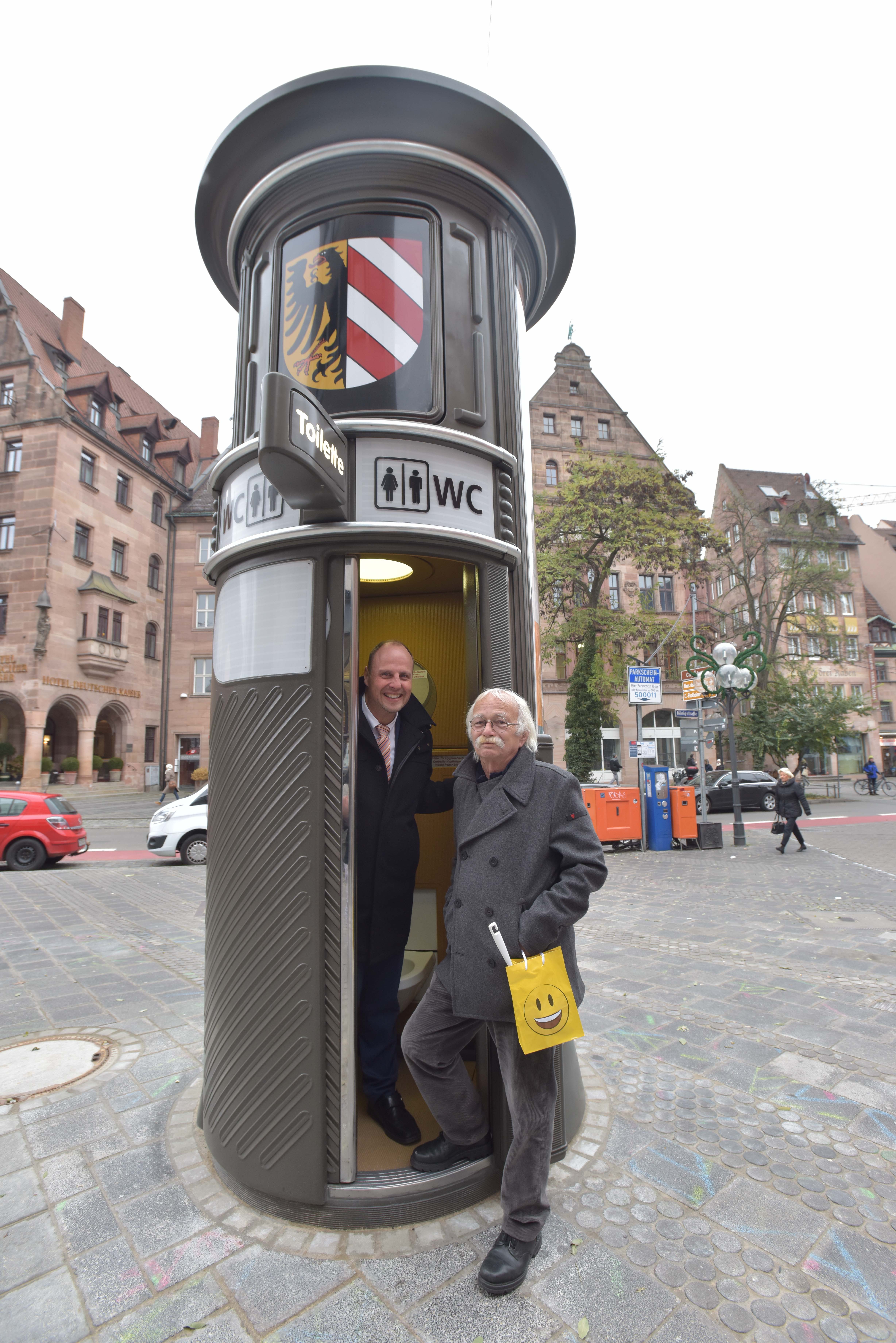 Das zweite vollautomatische Litfaßsäulen-WC ist am heutigen Dienstag, 15. November 2016, in Betrieb gegangen. Nach dreimonatiger Bauzeit und damit noch rechtzeitig vor dem Start des Christkindlesmarkts in Nürnberg und dem Welttoilettentag am 19. November wurde die Anlage an der Königstraße 58 realisiert. Der Servicebetrieb Öffentlicher Raum Nürnberg (Sör) war für die technische Standortsuche und die Bauarbeiten verantwortlich. Den weiteren Betrieb übernimmt die Stadtreklame Nürnberg.