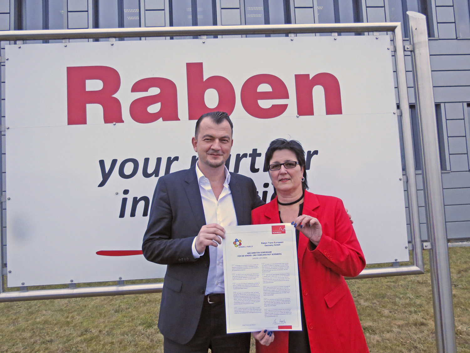Das Bündnis für Familie begrüßt den 200. Partner in seinem Netzwerk für ein familienfreundliches Nürnberg. Die Raben Trans European Germany GmbH mit Sitz im Hafen sagt „ja“ zu einer familienbewussten Personalpolitik, die den Arbeitgeber für alle Generationen im Unternehmen attraktiv erhält. Die Niederlassung Nürnberg von Raben Trans European bietet branchenunabhängige Dienstleistungen in der Beschaffungs-, Distributions- und Lagerlogistik an.