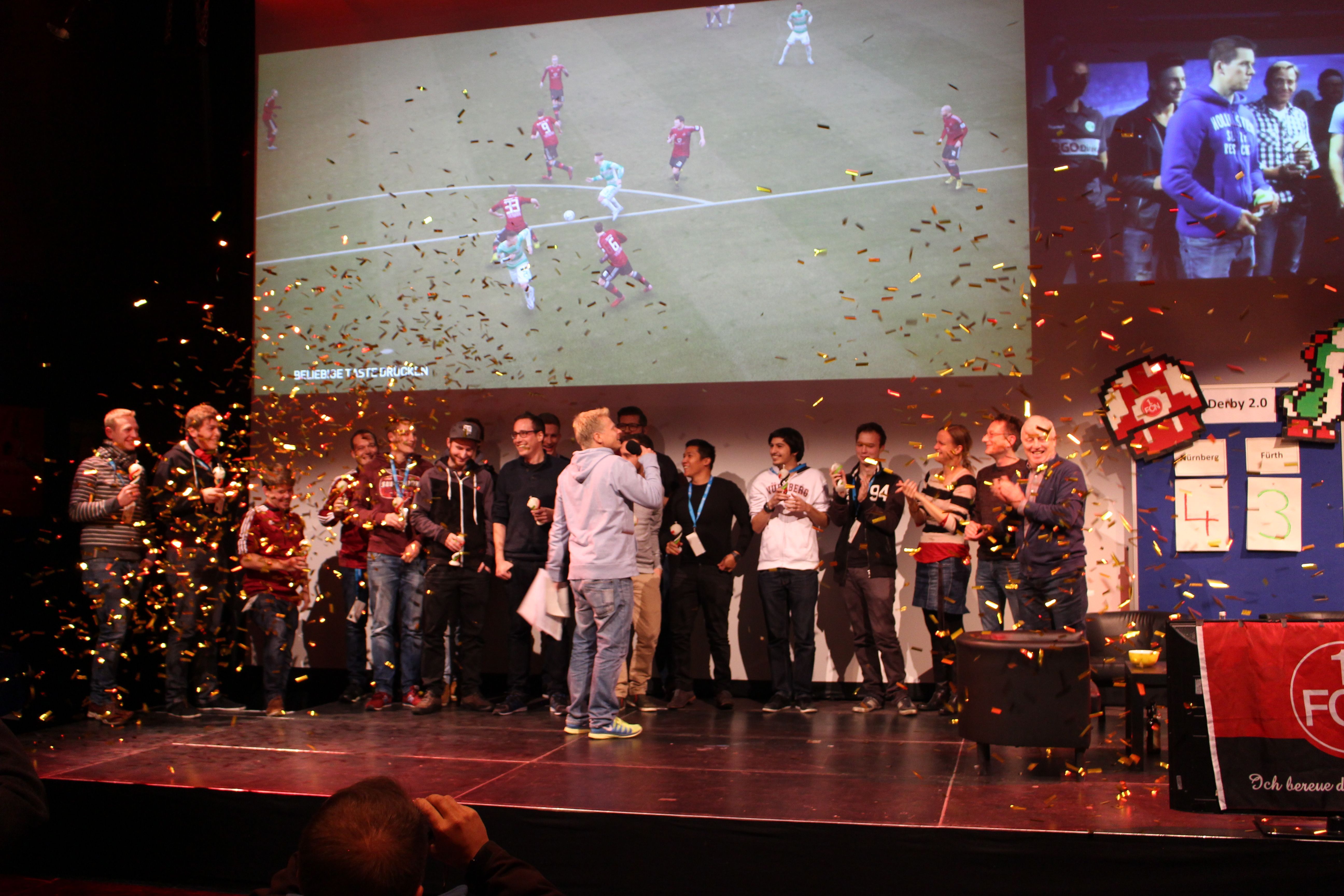 Derbyzeit ist für Frankens Fußballfans die schönste Zeit – zum 263. Mal treffen sich am 24. September 2017 der 1. FCN und das Kleeblatt der SpVgg Greuther Fürth vor vollen Rängen im Ronhof. Wie es auch immer diesmal ausgeht – virtuell bietet sich die Gelegenheit für eine sportliche Revanche: Das KunstKulturQuartier, das Jugendmedienzentrum Connect und die Deutsche Akademie für Fußball-Kultur laden zum Derby 2.017 ein – das Turnier an den Konsolen geht in die dritte Runde. Ausgetragen wird es auf Playstation4-Konsolen, übertragen auf Großleinwand, gestreamt im Netz. Gezockt wird FIFA 18 und zwar in Echtzeit und vor Publikum vor Ort. Sieben Zweierteams treten von Fürth und Nürnberg aus gegeneinander an. Die Spiele werden live von den BR-Sportmoderatoren Oliver Tubenauer und Florian Weber kommentiert.