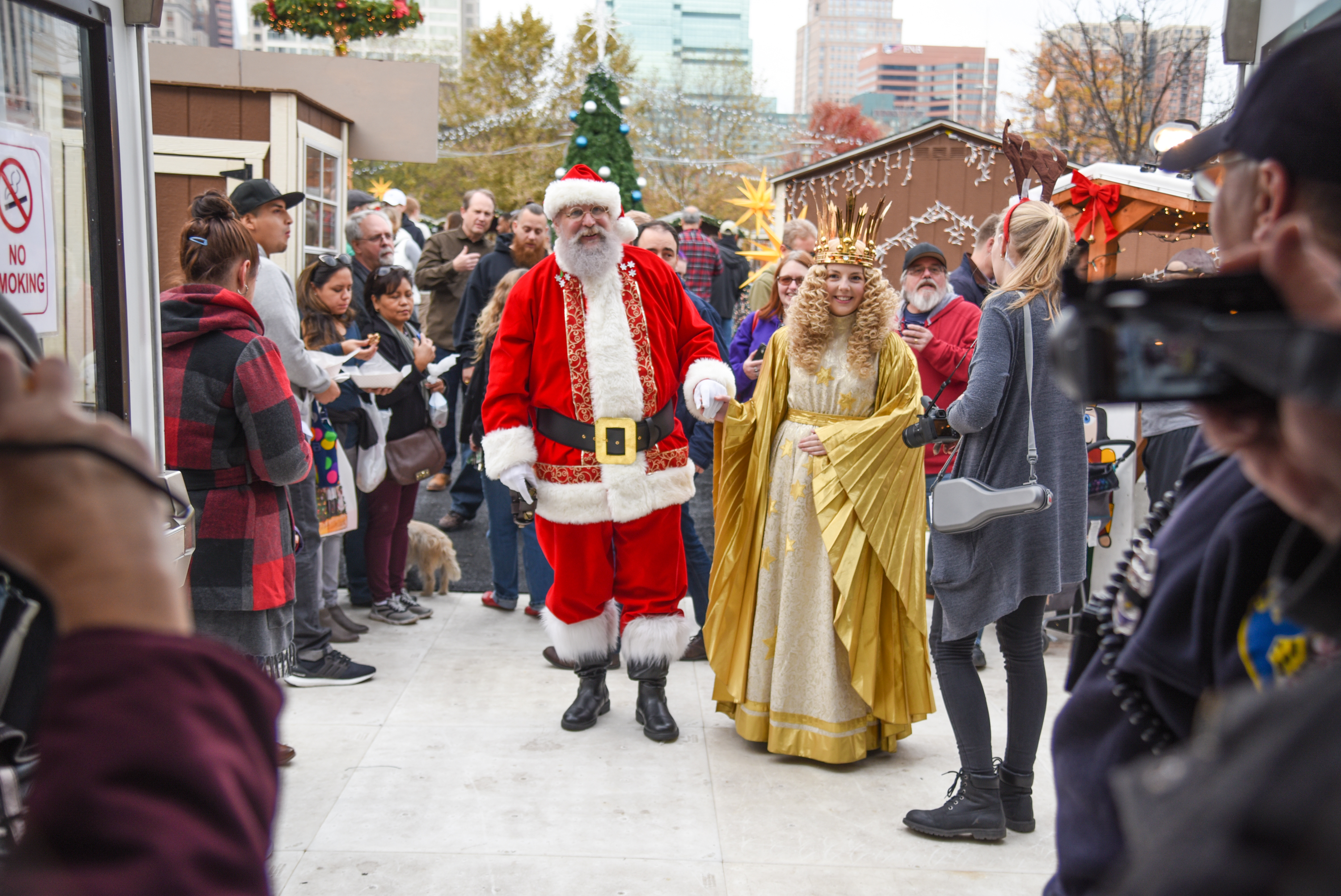 Das Christkind eröffnete mit Santa Claus den Weihnachtsmarkt in Baltimore/USA und begrüßte zahlreiche Besucher.
