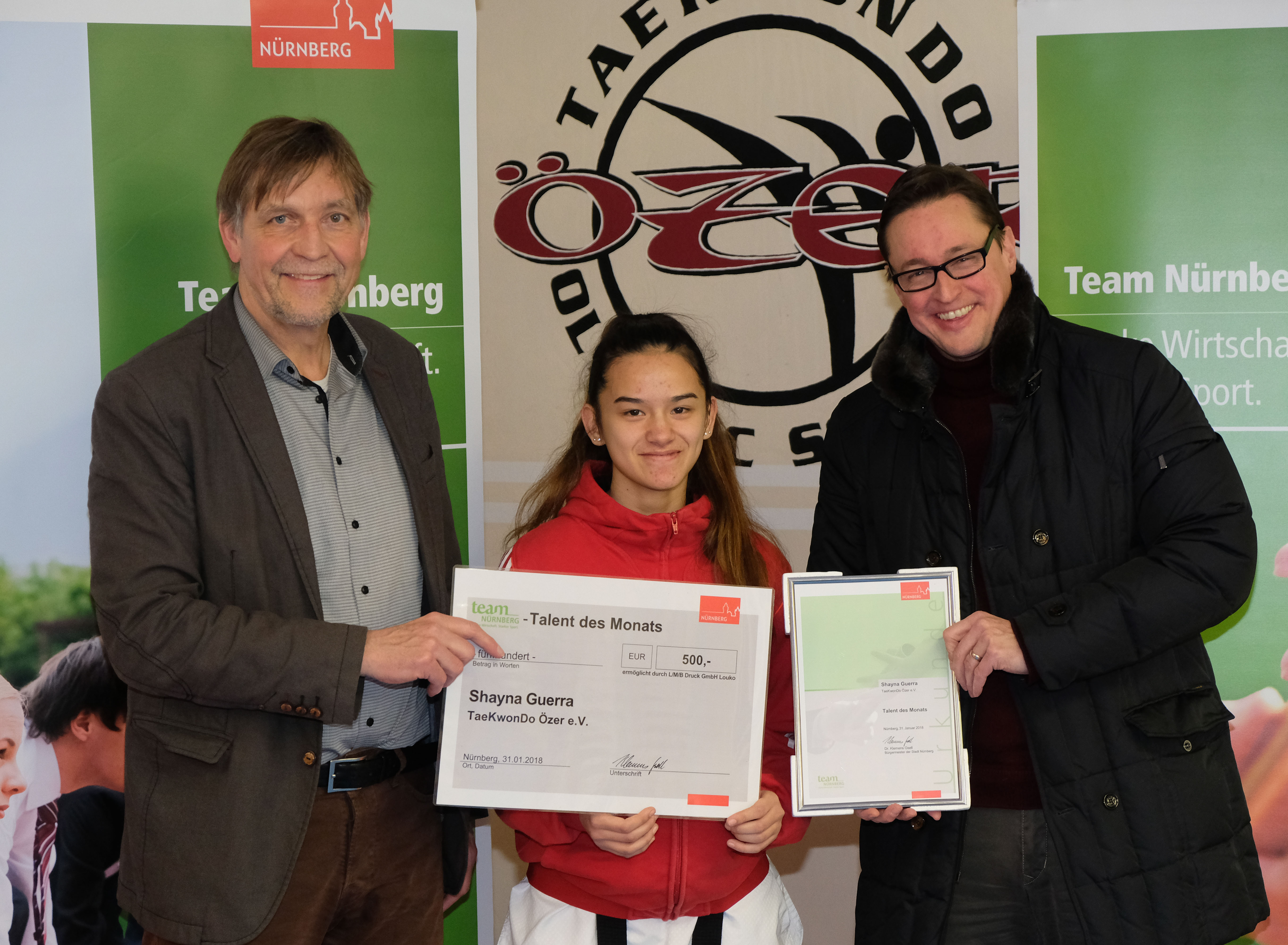 Die Förderinitiative Team Nürnberg hat am Donnerstag, 1. März 2018, das Taekwondo-Talent Shayna Guerra als Talent des Monats Januar 2018 ausgezeichnet.