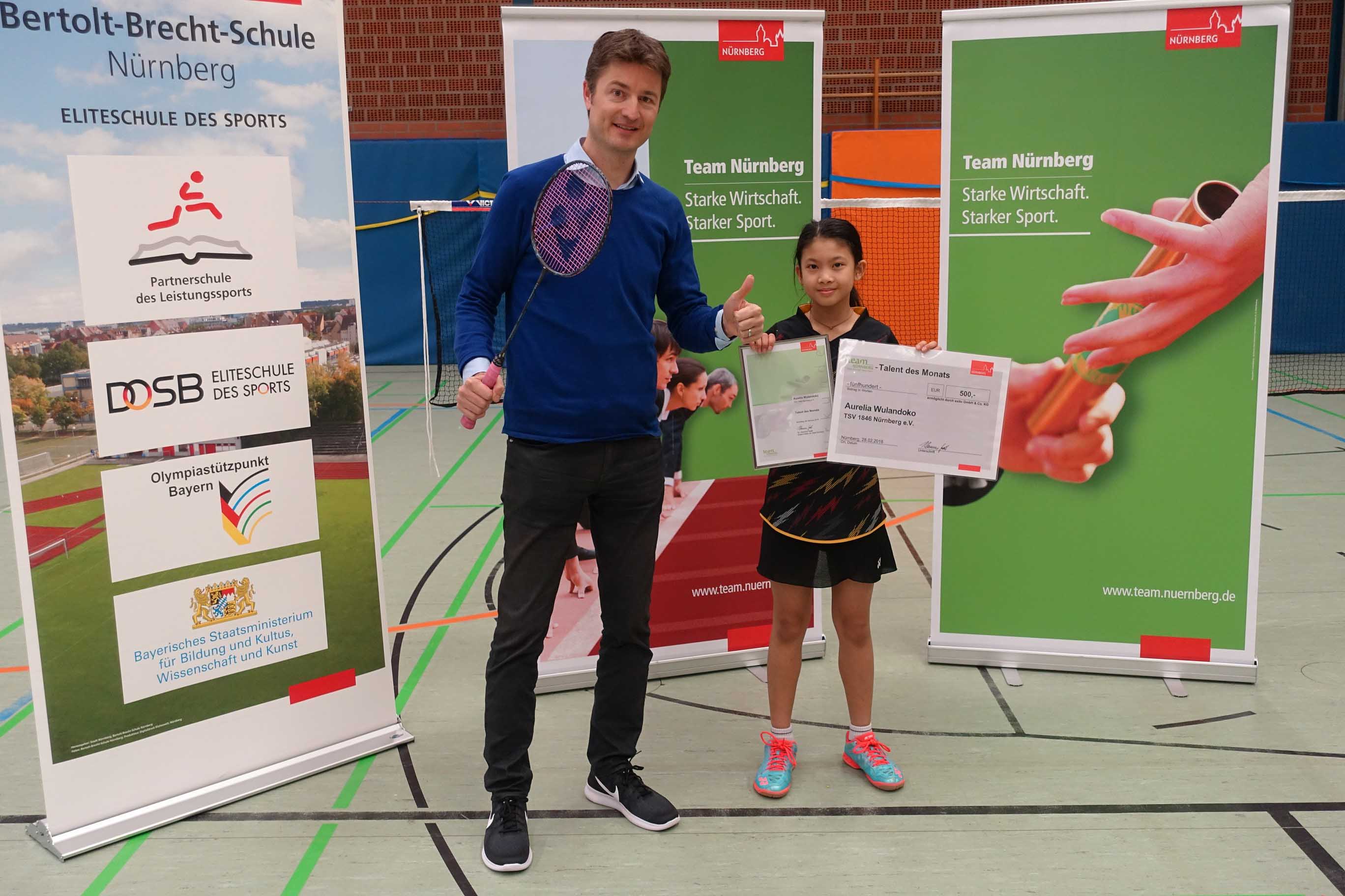 Die Förderinitiative Team Nürnberg hat am Dienstag, 20. März 2018, eine von Nürnbergs erfolgreichsten Badminton-Spielerinnen als „Talent des Monats Februar 2018“ ausgezeichnet: Die erst 11-jährige Aurelia Wulandoko vom Turn- und Sportverein 1846 Nürnberg e.V.