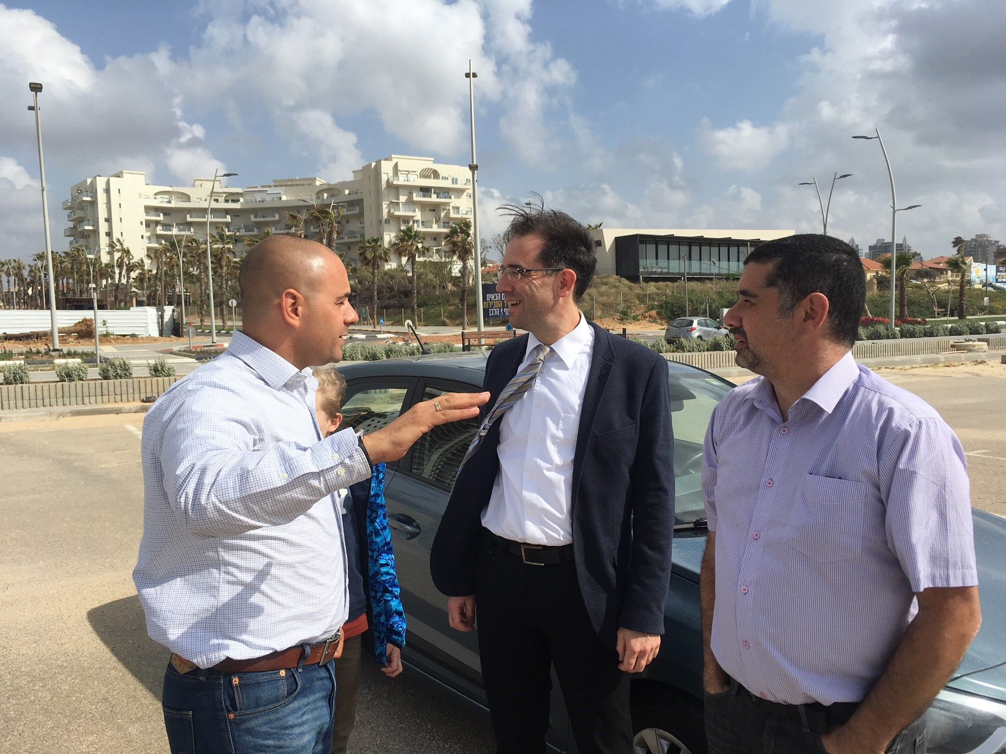 Daniel F. Ulrich, Planungs- und Baureferent der Stadt Nürnberg, stattete am Donnerstag, 29. März 2018, den Kollegen aus der Verwaltung von Nürnbergs Partnerstadt Hadera einen Besuch ab. Im Gespräch mit Matanya Kachlon, CEO of Nechalim Hadera Tourism Company, und Ariel Weinberg überbrachte Ulrich Grüße von Oberbürgermeister Dr. Ulrich Maly und nutzte die Gelegenheit, die besten Wünsche für das anstehende Pessach-Fest zu übermitteln. „Es war erstaunlich intensiv – Radwege, Fußgängerzone, Stadtwachstum und die Organisation von alledem. Ein supernetter Empfang und tolle Eindrücke!“, schwärmt Ulrich.