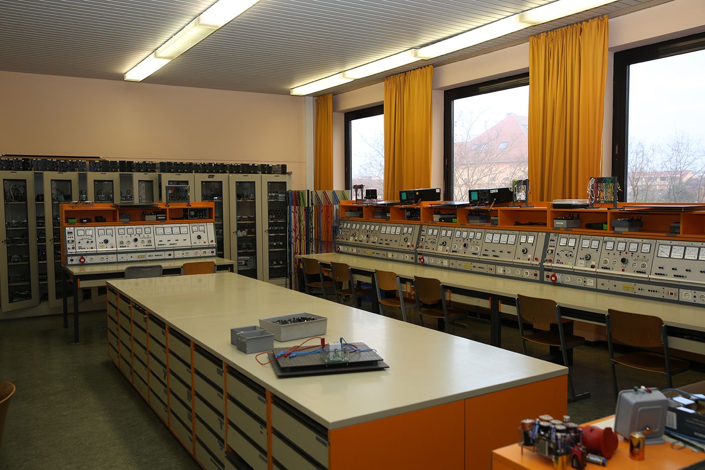 Das städtische Hochbauamt saniert derzeit ein Elektrolabor in der Beruflichen Schule 1 in der Augustenstraße 30. Die Gesamtkosten hierfür belaufen sich auf rund 500 000 Euro. Bereits in den vergangenen Jahren sind dort mehrere Unterrichtsräume für Elektroniker und Elektroanlagenmonteure umgebaut worden, weil die Einrichtung der Räume aus dem Jahr 1975 stammt und veraltet ist. Die erste Umbauten erfolgten im Jahr 2011, gegenwärtig laufen die Arbeiten im letzten Fachunterrichtsraum.