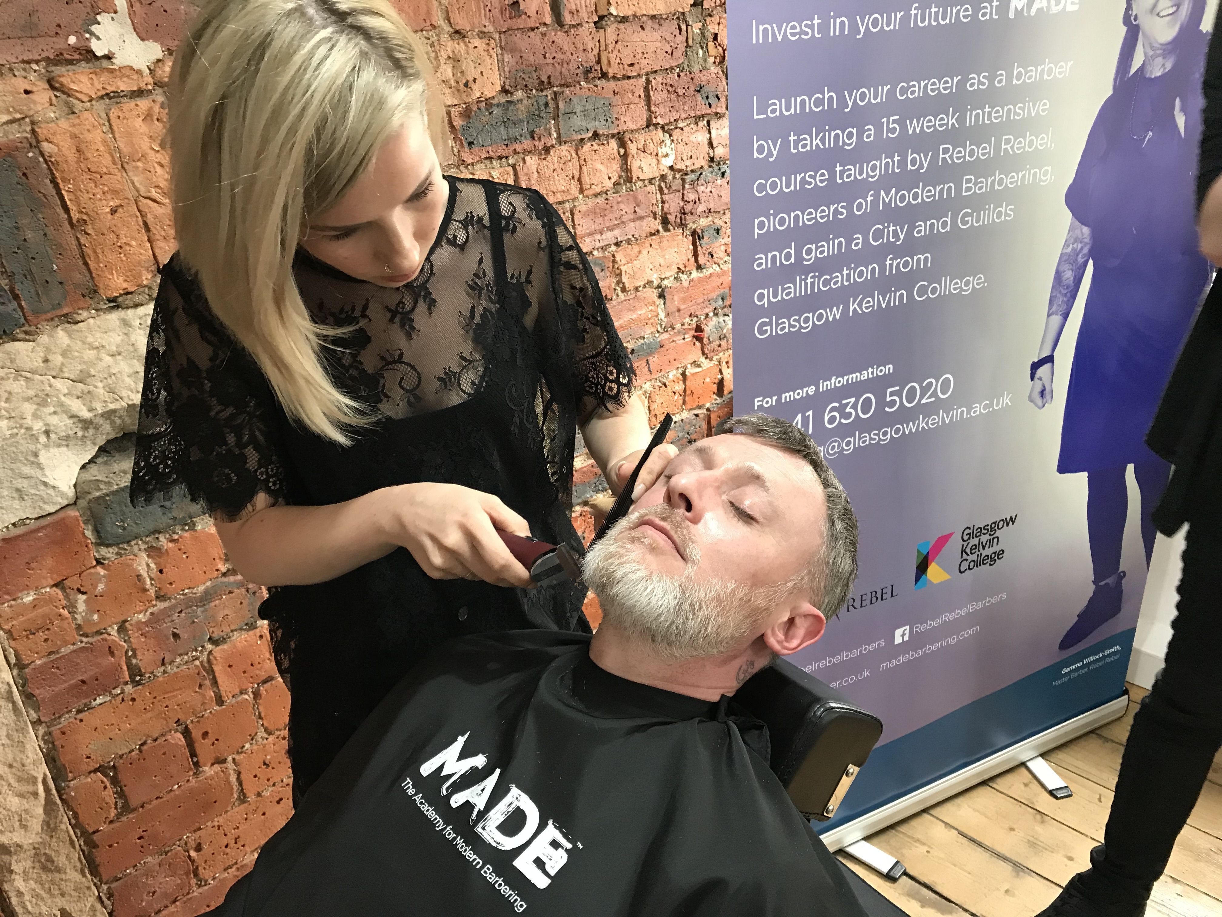 Die drei Auszubildenden erlebten zwei Wochen lang abwechslungsreiches praktisches Arbeiten in verschiedenen Betrieben, wie dem Trendsalon „rebel rebel“ in Glasgow, dem schuleigenen Salon des Kelvin College, der angeschlossenen „Made – The Academy for Modern Barbering“ und das Stylen der Models anlässlich der Jubiläumsmodenschau im Kelvin Groove Museum, zum Bestehen der zehnjährigen Partnerschaft zwischen der Modeschule der Beruflichen Schule 5 und dem Kelvin College.