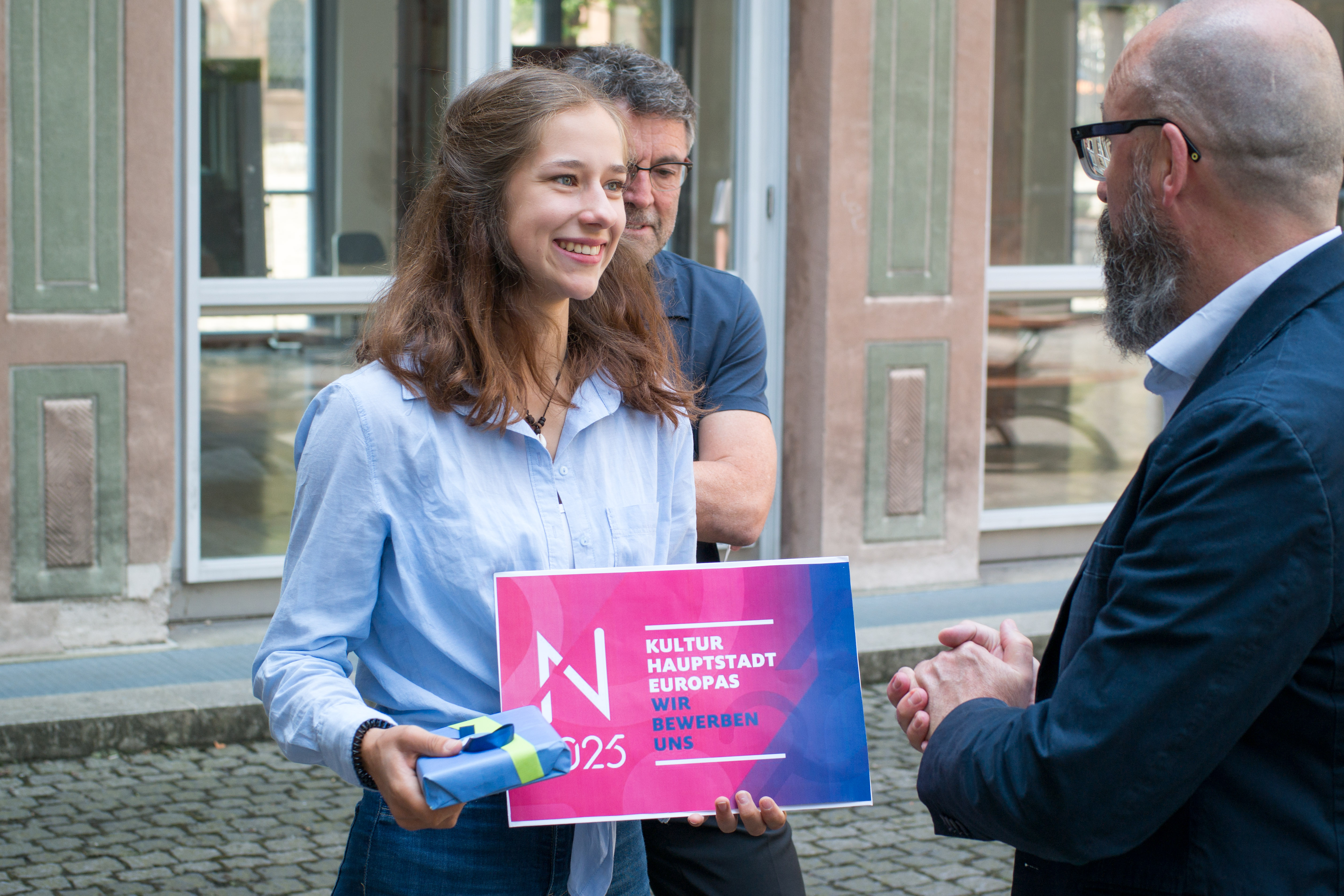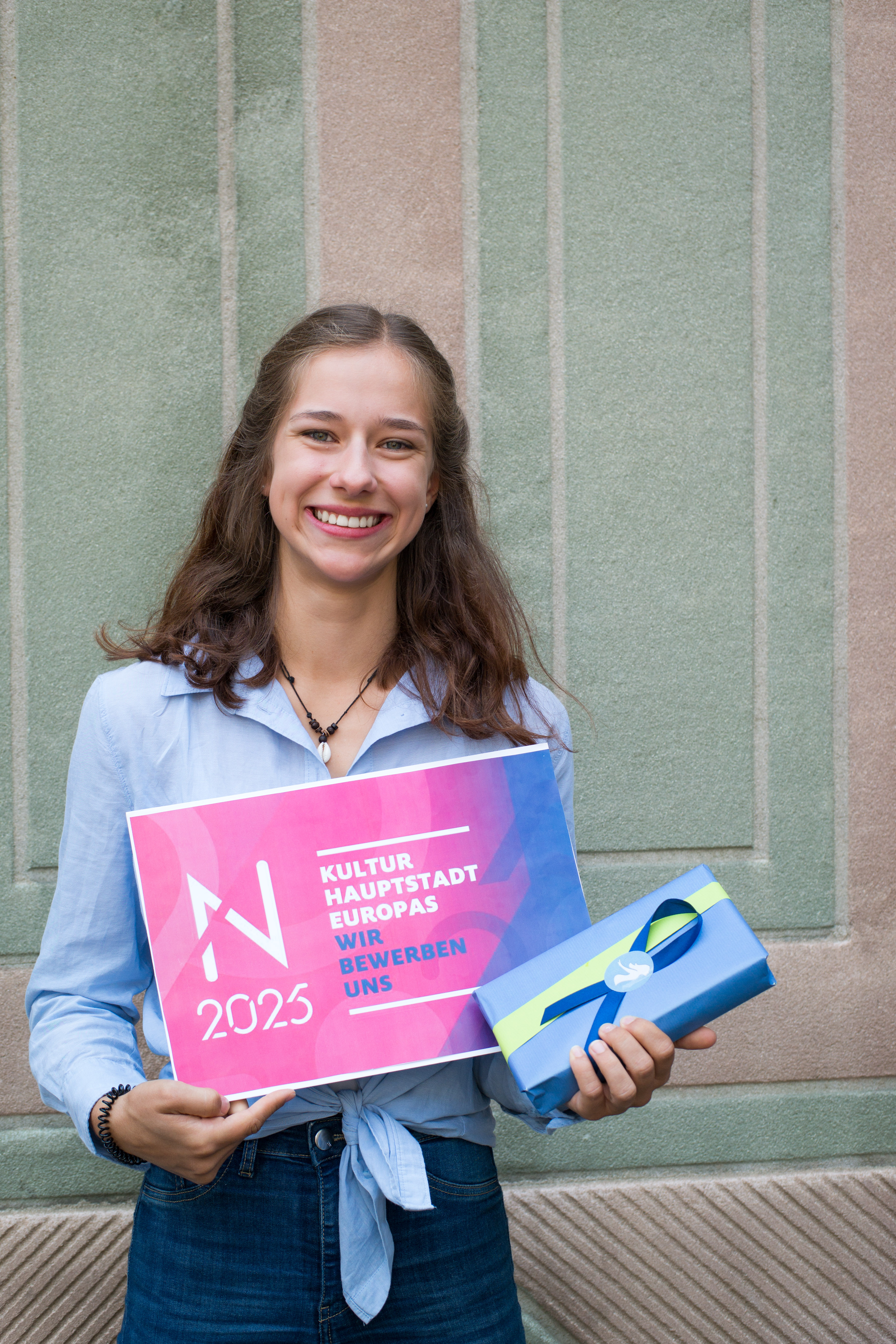 „bE U – Share Democracy“ lautet das Motto für das Projekt, bei dem sich im Schuljahr 2018/19 alle Nürnberger Schulen an der Bewerbung Nürnbergs um den Titel Kulturhauptstadt Europas 2025 beteiligen können. In einem Wettbewerb zur Motto-Suche hat sich Miriam Winterstein durchgesetzt. Für ihren Vorschlag erhielt die Schülerin des Willstätter-Gymnasiums 100 Euro. Eine Jury aus Vertretern der Nürnberger Schulen und des N2025-Bewerbungsbüros kürte das Sieger-Motto aus mehr als 60 Einreichungen.