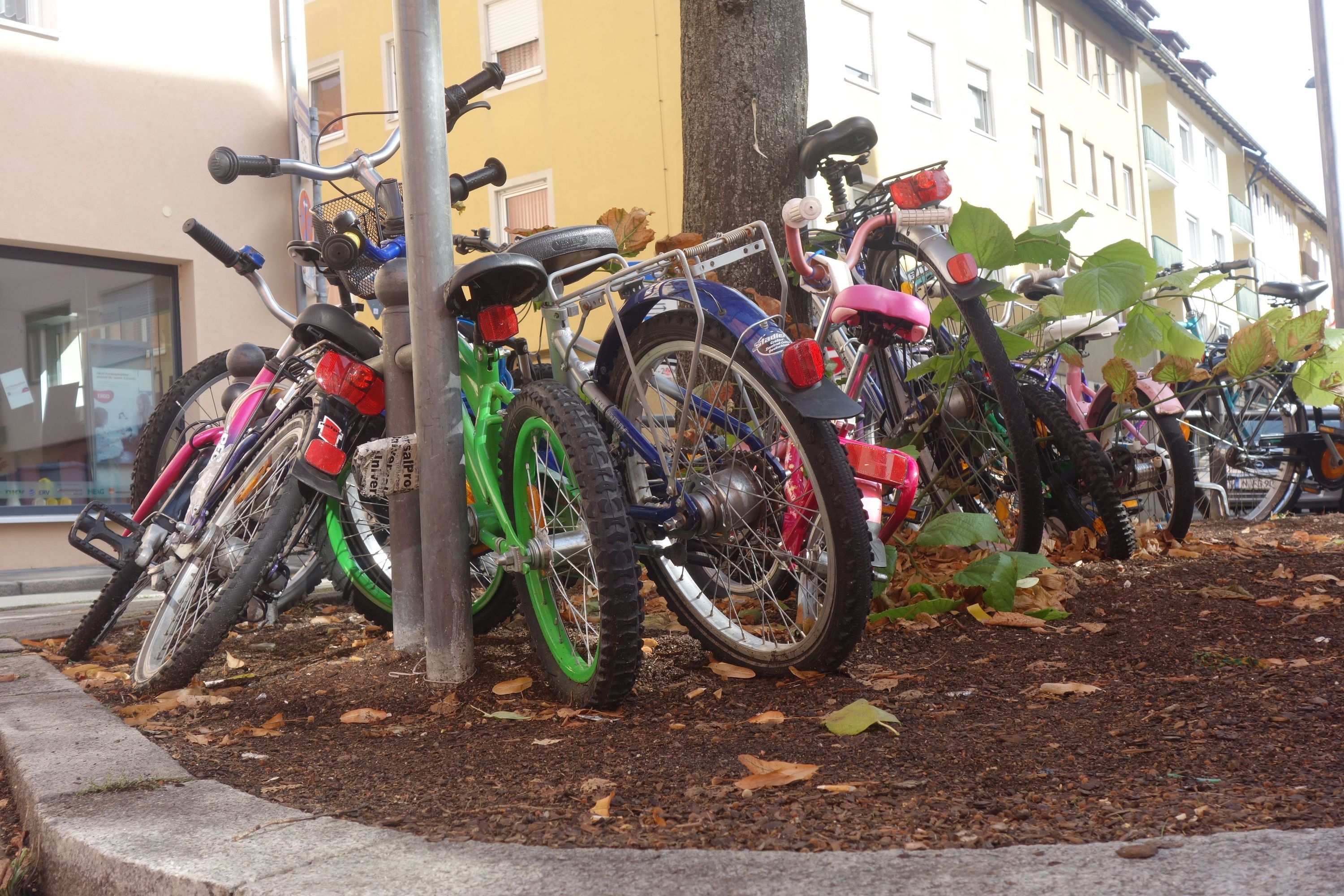 Bild Download: Abgestellte Räder in Baumscheiben - Radständer für die Altstadt