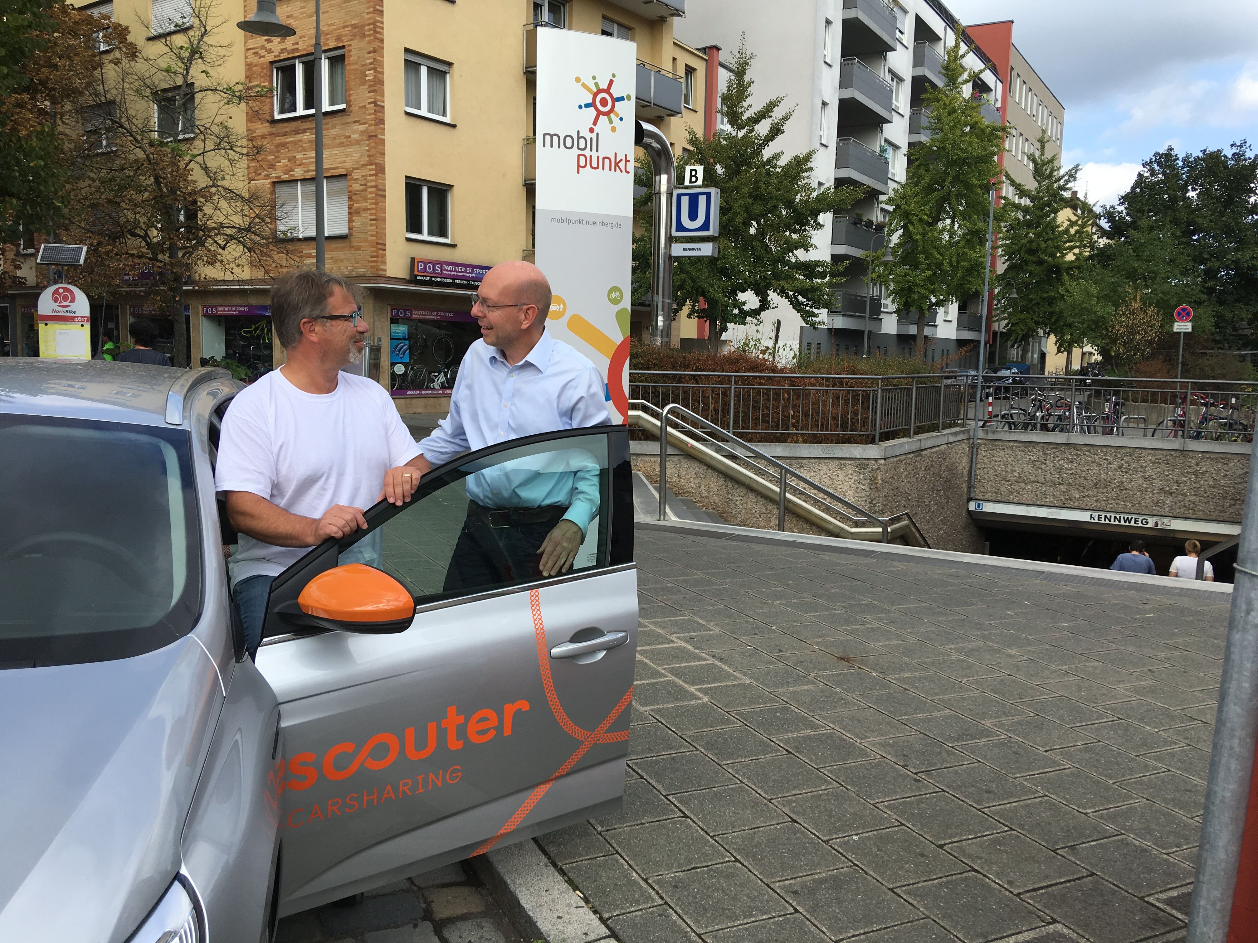 Durch dieses Angebot erhalten Bürgerinnen und Bürger ein flexibles und bedarfsgerechtes Mobilitätsangebot jenseits des privaten Kfz. Im Durchschnitt wird ein Privatfahrzeug täglich nur eine halbe Stunde genutzt und bleibt 23,5 Stunden stehen. Die Nürnberger Fahrzeuge scouter des Anbieters Sharegroup GmbH, der die bestehenden Stationen mit Autos ausstattet, sind täglich fast neun Stunden unterwegs. Sie vereinen also im Vergleich ein Vielfaches an Verkehrsleistung auf sich. Befragungen haben ergeben, dass ein Carsharing-Fahrzeug bis zu 17 private Autos ersetzt. Besonders interessant ist Carsharing für Menschen in dicht bebauten Innenstadtgebieten, in denen der Parkdruck aufgrund der Flächenbegrenzung sehr hoch ist. Zudem können Menschen, die selten ein Auto brauchen, ganz auf ein privates Auto verzichten.