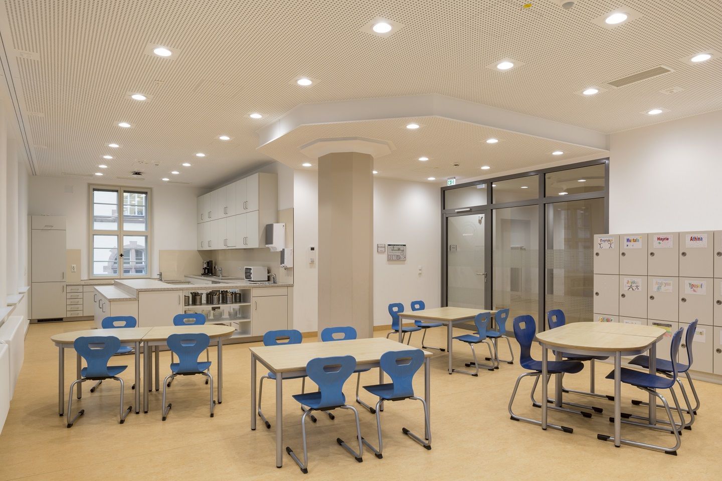 „Das Hochbauamt führte die Maßnahme im Spannungsfeld der Anforderungen des Wärme-, Schall-, Brand- und Denkmalschutzes sowie der Barrierefreiheit durch. Die technische Ausrüstung wurde komplett erneuert und eine Schadstoffsanierung durchgeführt. Aufgrund der Kriegsschäden am und im Gebäude, der Umwelteinwirkungen am Naturstein der Fassaden und der baulichen Anpassung an die Brandschutzauflagen mussten umfangreiche und aufwändige Arbeiten durchgeführt werden. Die historischen Fenster und die Innentüren sind denkmalschutzgerecht und nach den neuesten Regeln der Technik modernisiert“, erklärt Planungs- und Baureferent Daniel F. Ulrich.