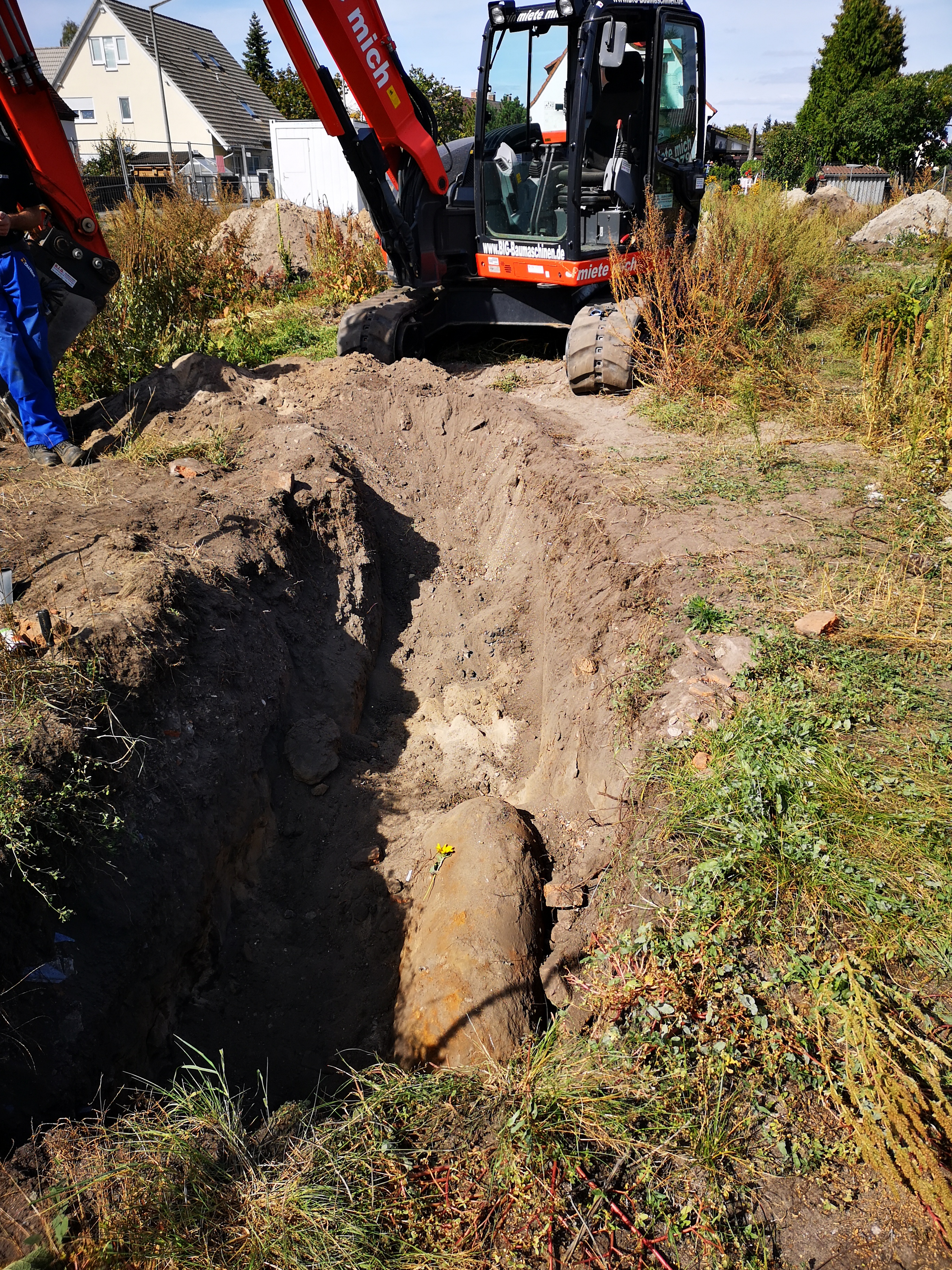 Die am heutigen Donnerstag, 19. September 2019, in der Lohestraße in Kleinreuth hinter der Veste gefundene US-amerikanische Fliegerbombe.