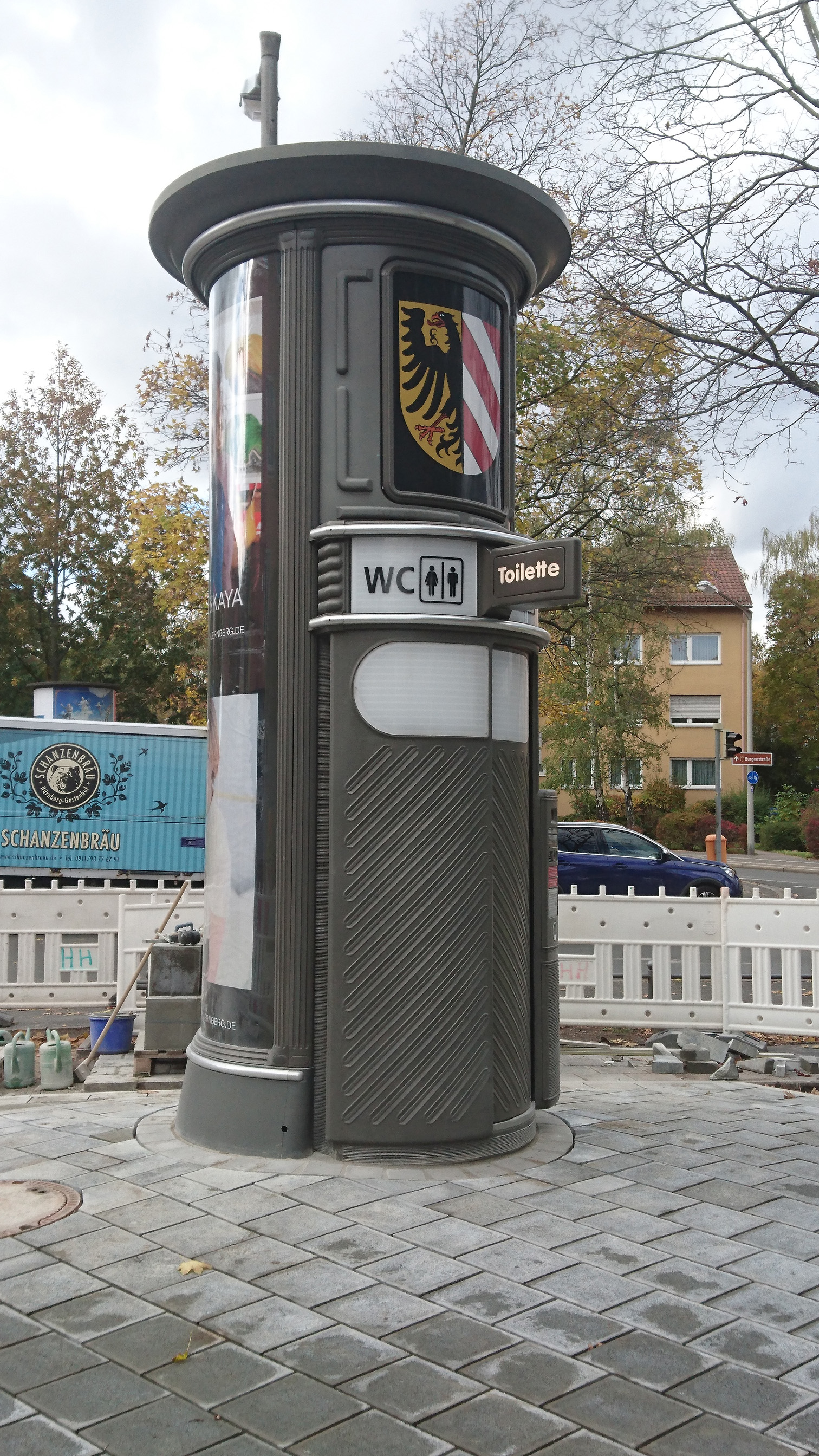 Ab Montag, 21. Oktober 2019, kann eine neue Litfaßsäulen-Toilette am Maxtor, Höhe Hausnummer 2, genutzt werden. Aktuell erfolgen noch Wegbauarbeiten. Bauherr ist der Servicebetrieb Öffentlicher Raum Nürnberg (Sör) in Kooperation mit der Stadtreklame Nürnberg. Diese ist für den Betrieb und den Unterhalt der Anlage zuständig.