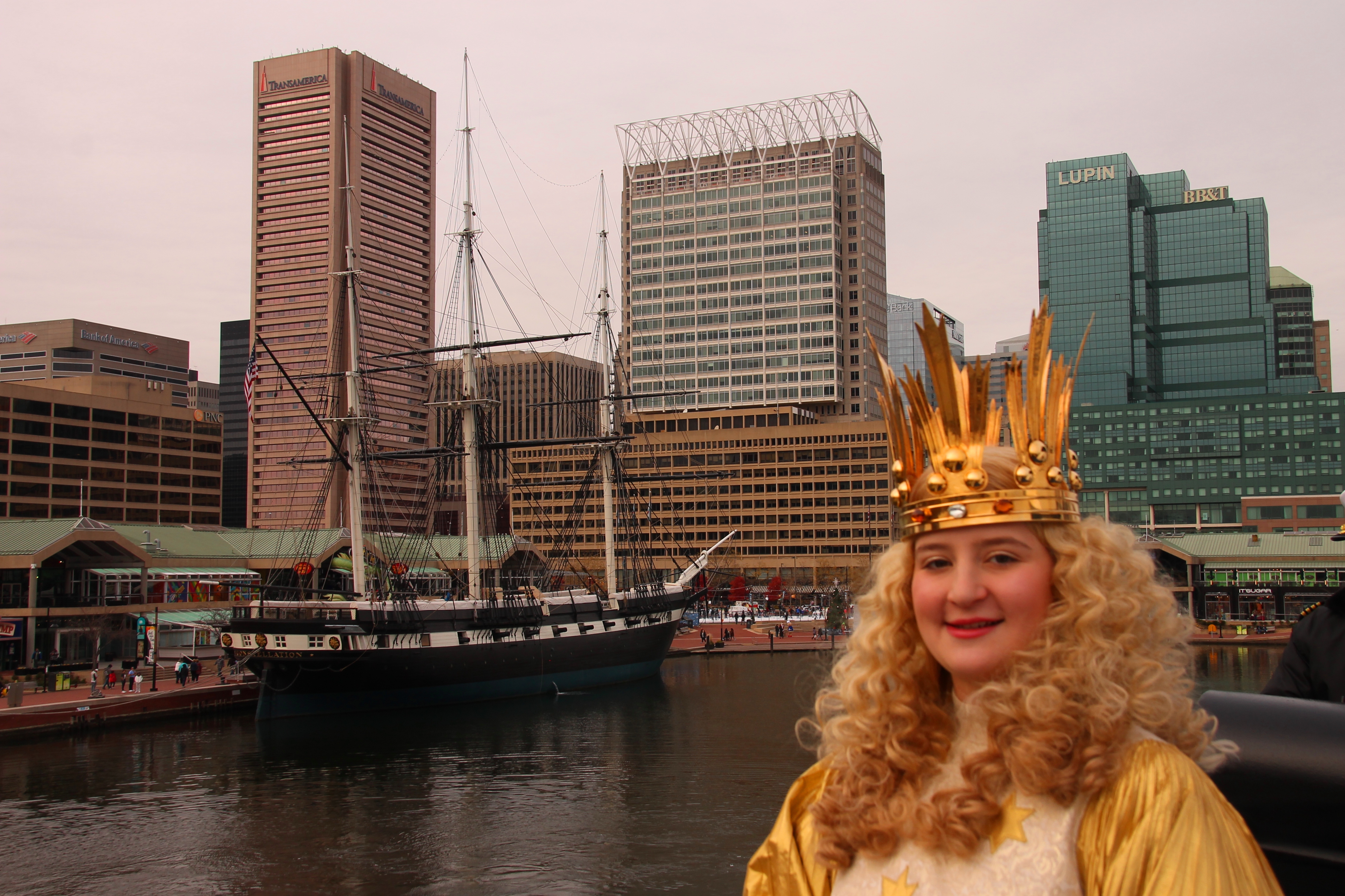 Das Nürnberger Christkind der Jahre 2017/18, Rebecca Ammon, bei der Hafenrundfahrt in Baltimore kurz vor der Eröffnung des dortigen "Christmas Village".