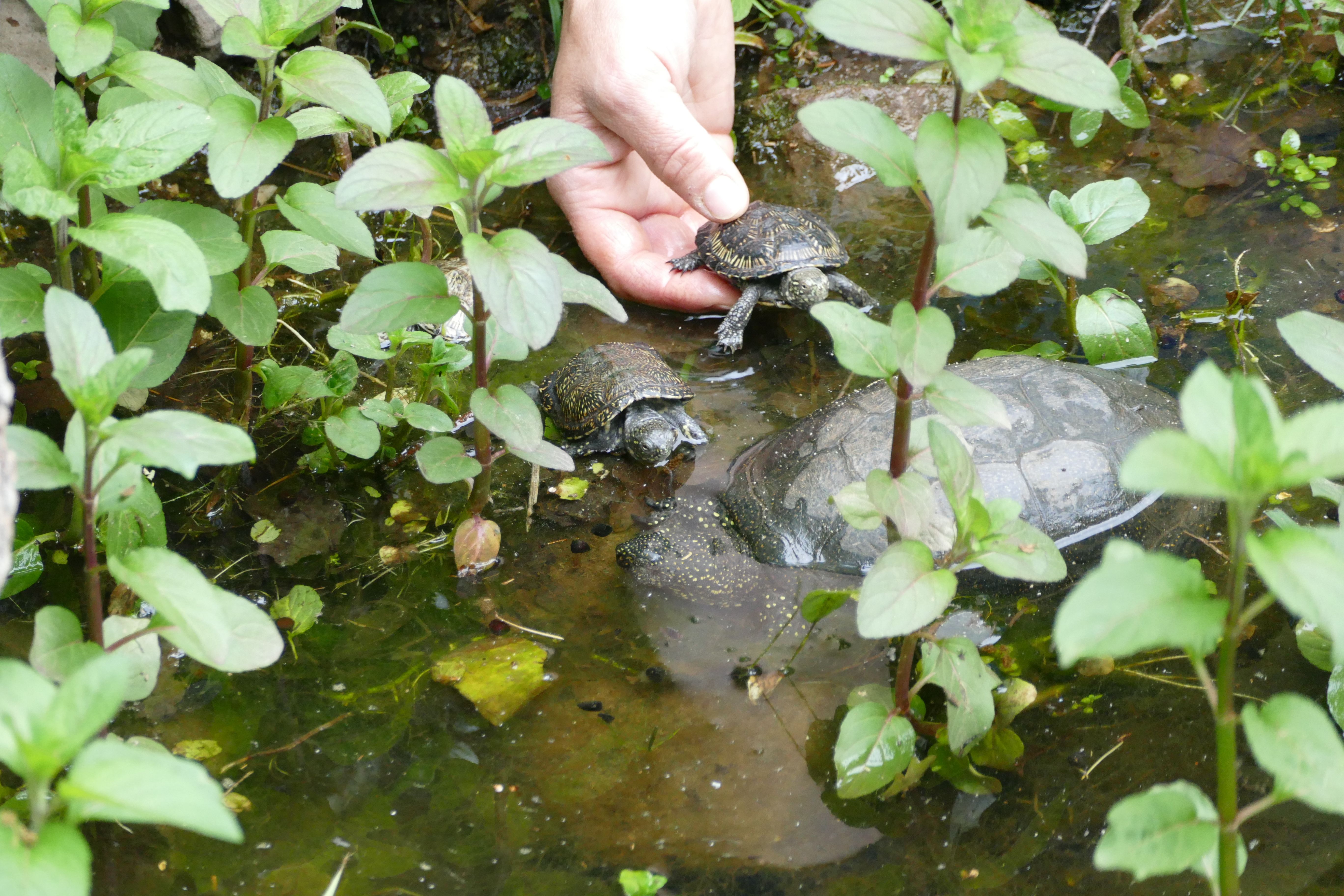 Der Tiergarten der Stadt Nürnberg beteiligt sich an einem Schutzprojekt für Europäische Sumpfschildkröten und engagiert sich für eine weitere bedrohte einheimische Tierart. Kürzlich übergaben Mitglieder der AG Sumpfschildkröte aus Offenbach (Hessen, www.sumpfschildkröte.de) sechs jugendliche Tiere an den Tiergarten zur Aufzucht. Die Jungtiere sollen im sogenannten Mediterraneum heranwachsen, bis sie das zur Auswilderung notwendige Gewicht von etwa einhundert Gramm erreicht haben. Dadurch steigen ihre Überlebenschancen in der Natur. Frisch geschlüpfte Sumpfschildkröten werden oft und gerne gefressen und landeten schon im Mittelalter als Fastenspeise auf den Tellern. Bereits damals wurden die Bestände übernutzt und der spätere Verlust der Lebensräume durch Gewässerbegradigungen und Trockenlegungen hat die Europäische Sumpfschildkröte in Deutschland schließlich an den Rand der Ausrottung getrieben.