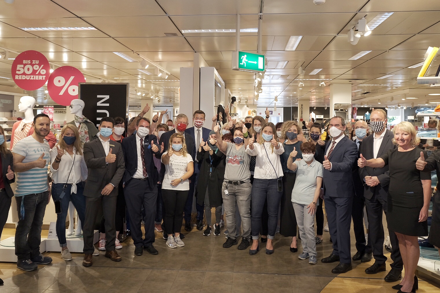 Nach der Rettung der Karstadt-Filiale an der Lorenzkirche ist es der Stadt Nürnberg, der Staatsregierung, den Gewerkschaften und Betriebsräten gemeinsam gelungen, auch die Schließung der Filiale des Kaufhauskonzerns in Langwasser abzuwenden. Das teilten Oberbürgermeister Marcus König und Reinhard Haas, Leiter Immobilien und Logistik der Galeria Karstadt Kaufhof GmbH i.I. den 78 Mitarbeitern heute Vormittag in einer Betriebsversammlung mit. Damit bleiben nun beide Filialen in Nürnberg erhalten.