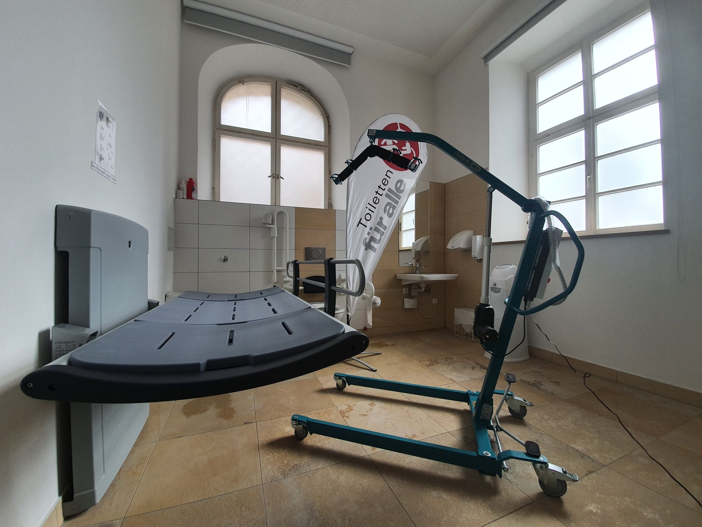 „Die ,Toilette für alle‘ verfügt neben der geforderten Ausstattung für Behinderten-Toiletten über einen mobilen Personen-Lifter, eine höhenverstellbare Klappliege, einen luftdicht verschließbaren Abfallbehälter und eine erweiterte Notrufeinrichtung. Der Zugang erfolgt barrierefrei über zwei Türen, die mit elektrischen Türantrieben ausgestattet sind“, so Planungs- und Baureferent Daniel F. Ulrich. In baulicher Hinsicht war neben Elektro- und Sanitärarbeiten auch die Erneuerung bestehender Türen hinsichtlich des Einbruchschutzes erforderlich. Die Arbeiten wurden vom Hochbauamt in Eigenregie geplant und durchgeführt. Betrieben wird die Toilette vom Servicebetrieb Öffentlicher Raum (Sör). maj