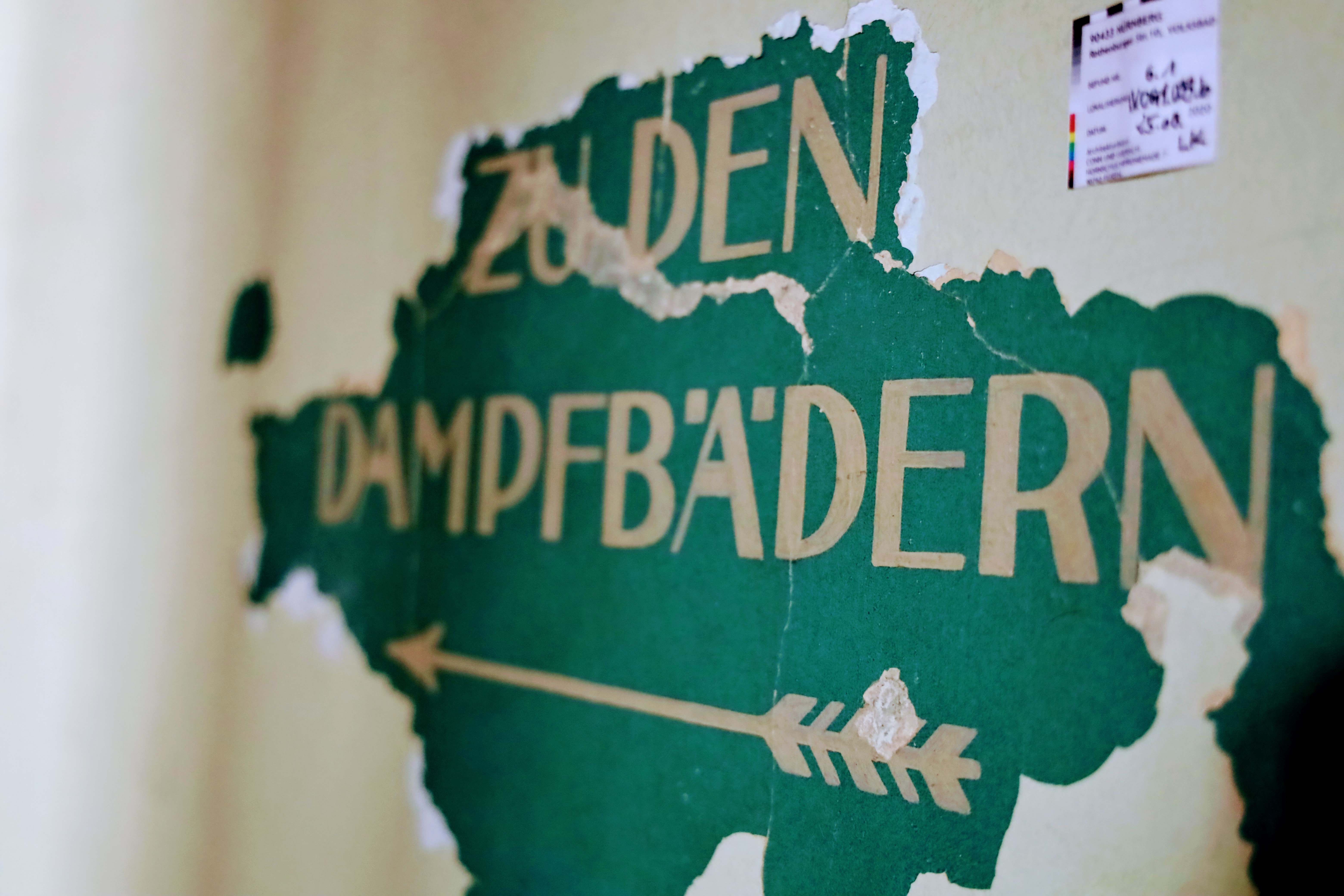 Bild Download: Freigelegte bauzeitliche Wandbeschriftung im Volksbad